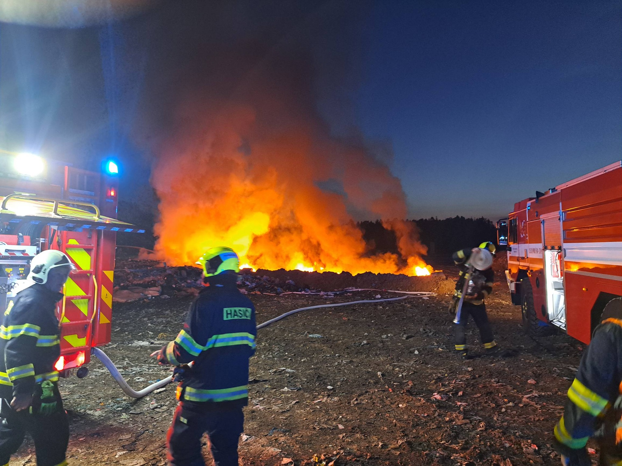 Klid však netrval dlouho. Dnes krátce před pátou hodinou ráno byli hasiči přivoláni na stejné místo znovu. Tentokrát hořelo v jiné části skládky, na ploše přibližně dvacet krát padesát metrů, a plameny zasáhly především plastový odpad.