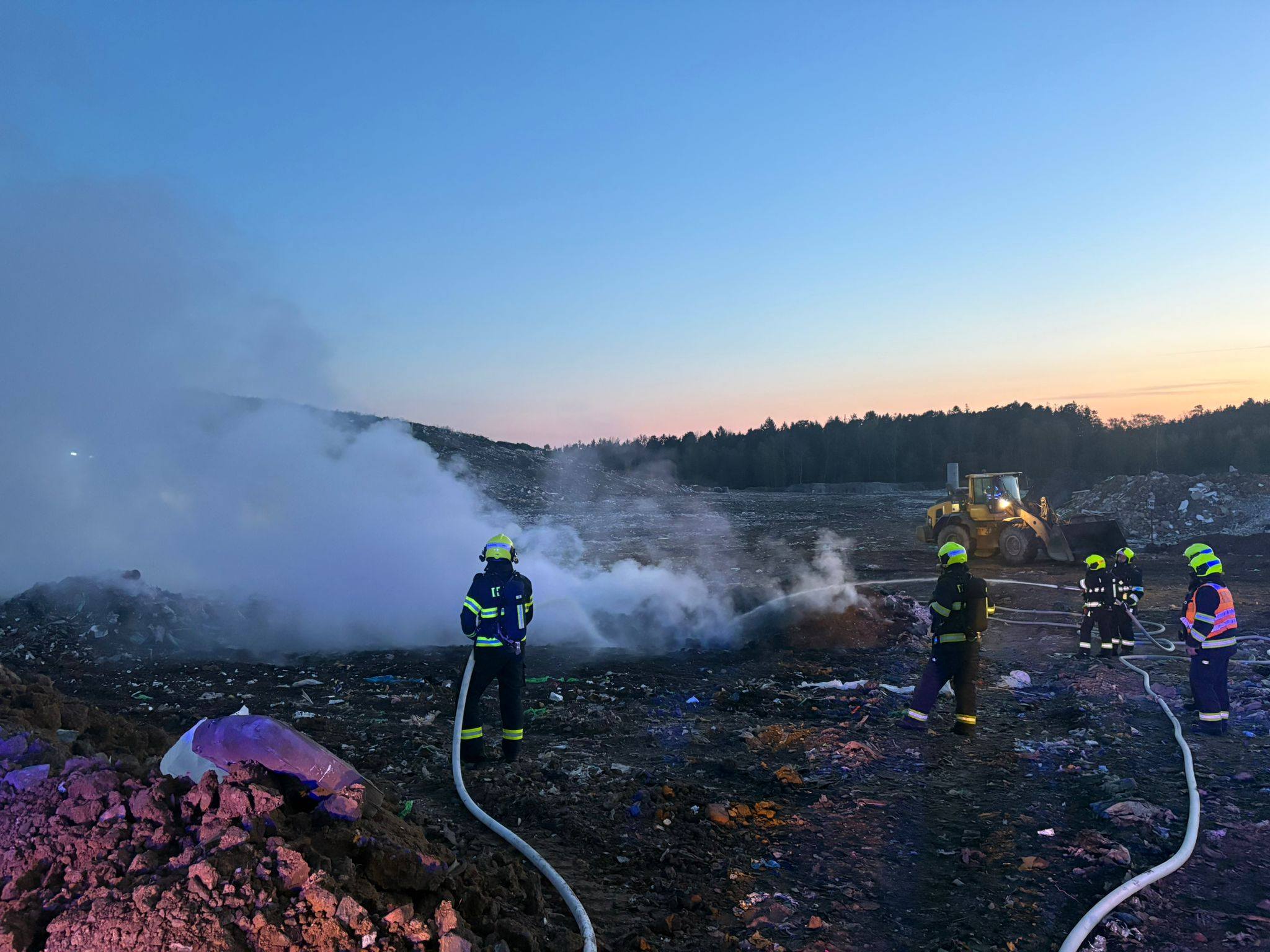 Plamenné hoření se podařilo zastavit zhruba půl hodiny po příjezdu jednotek. Následovalo opět důkladné prolévání odpadu vodou, aby se zabránilo dalšímu šíření ohně.
