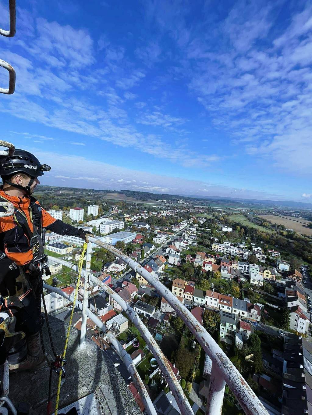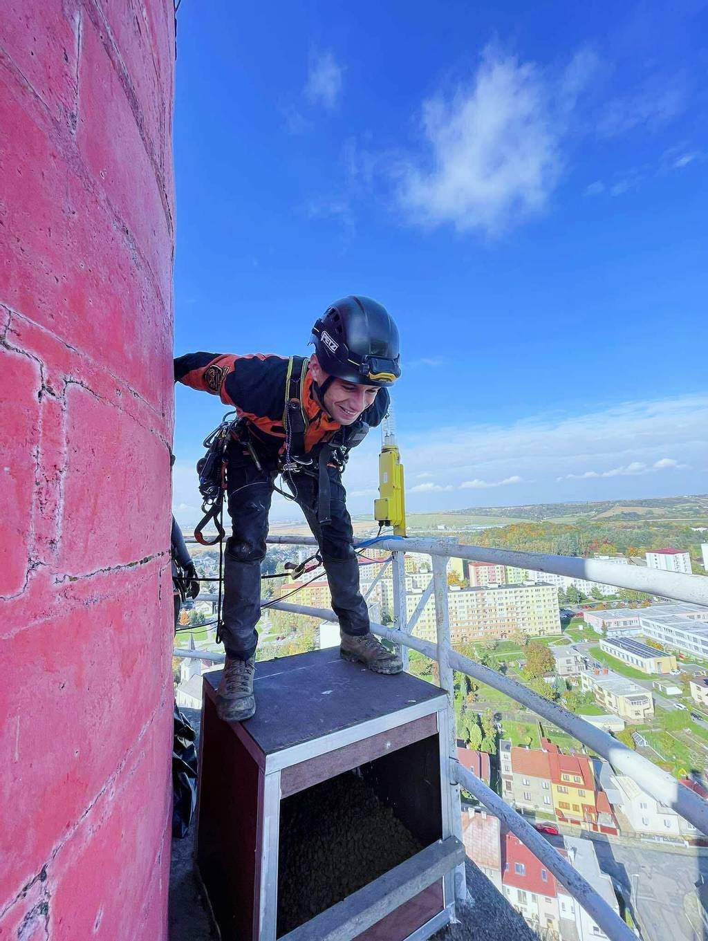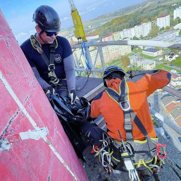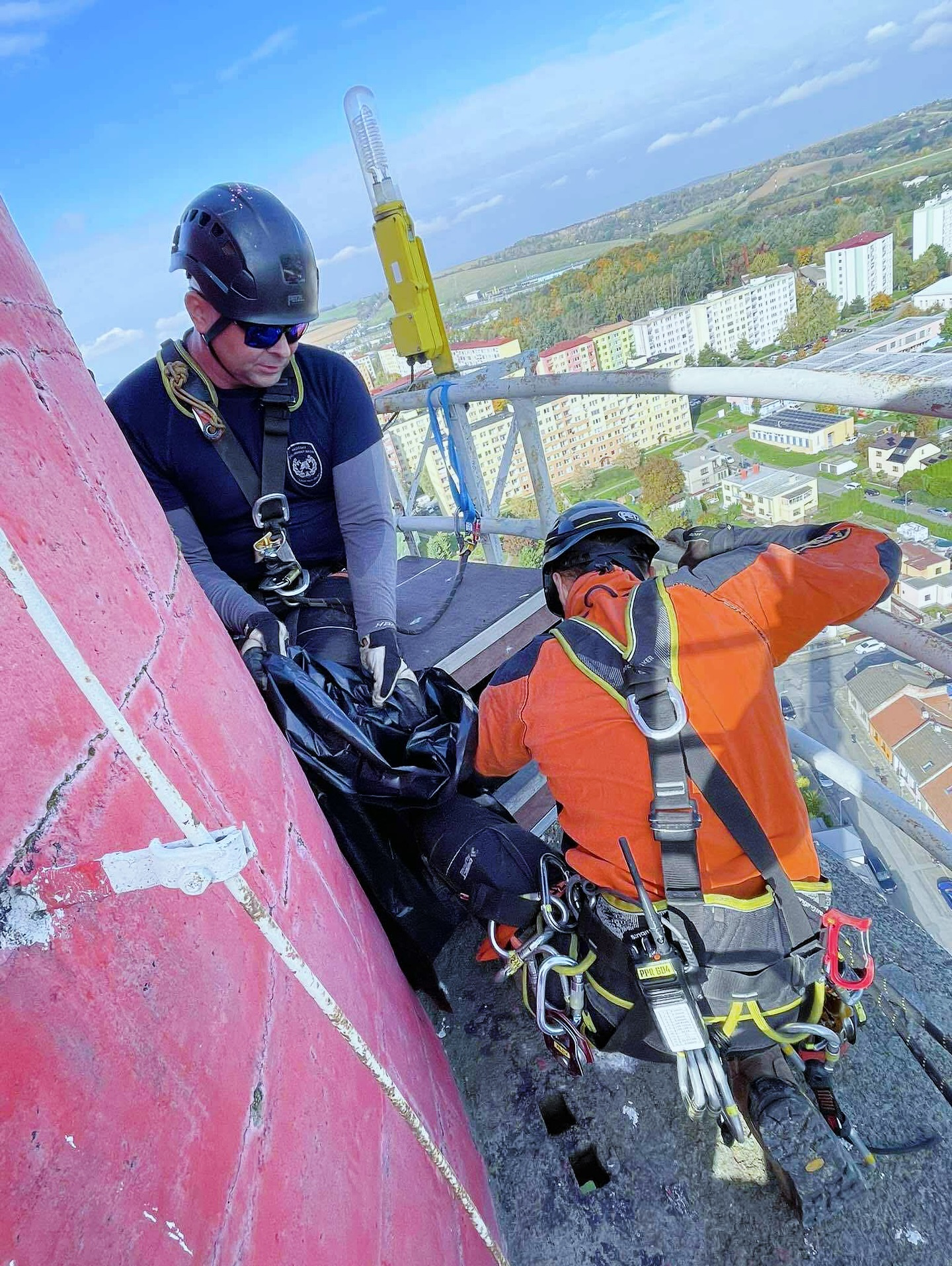 Tým zároveň využil výšku komína k nácviku záchrany osoby z vrchní podesty dolů na zem. Spojení praxe s reálnou pomocí přírodě tak přineslo zkušenost i dobrý pocit z užitečné práce.