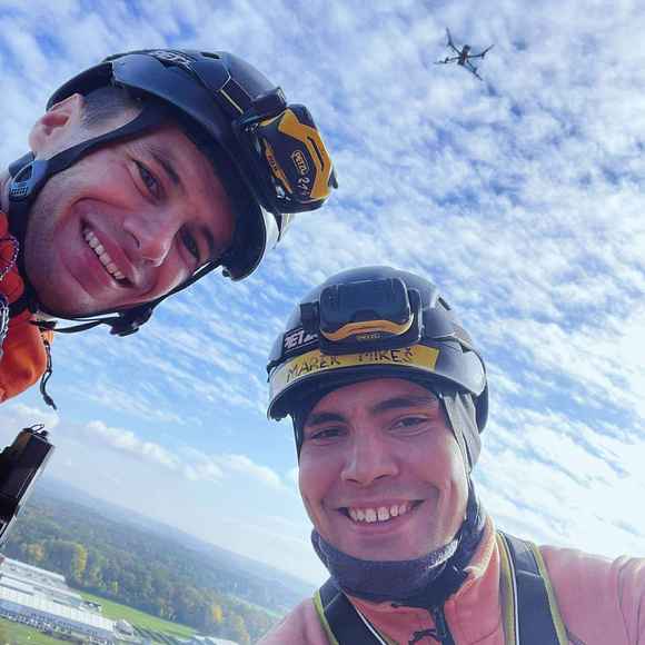 Na osmdesátimetrovém komíně čistili hnízdo sokolů a zároveň cvičili záchranu z výšky.