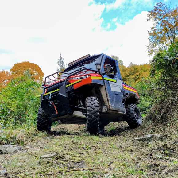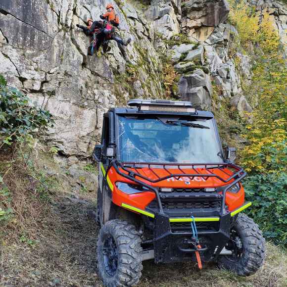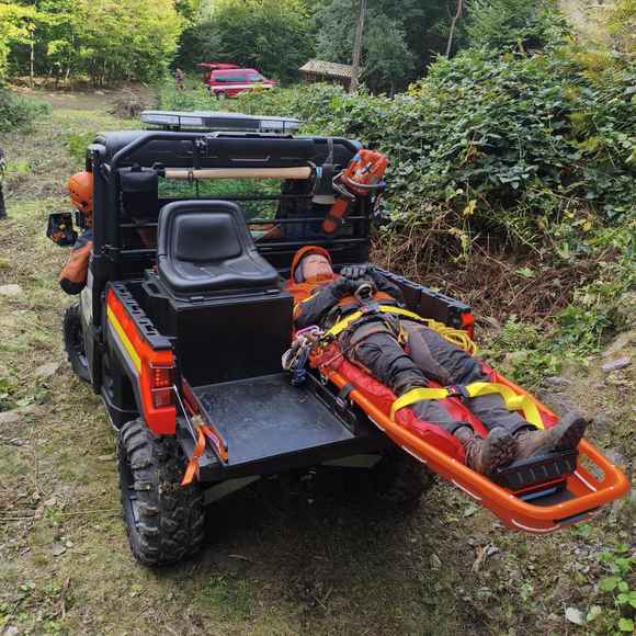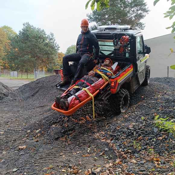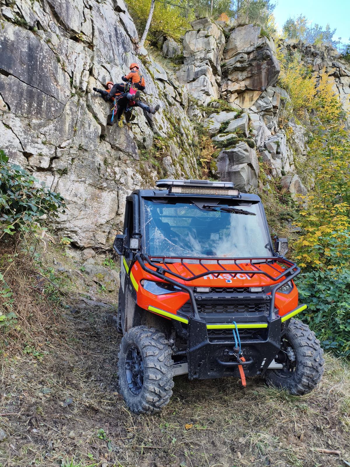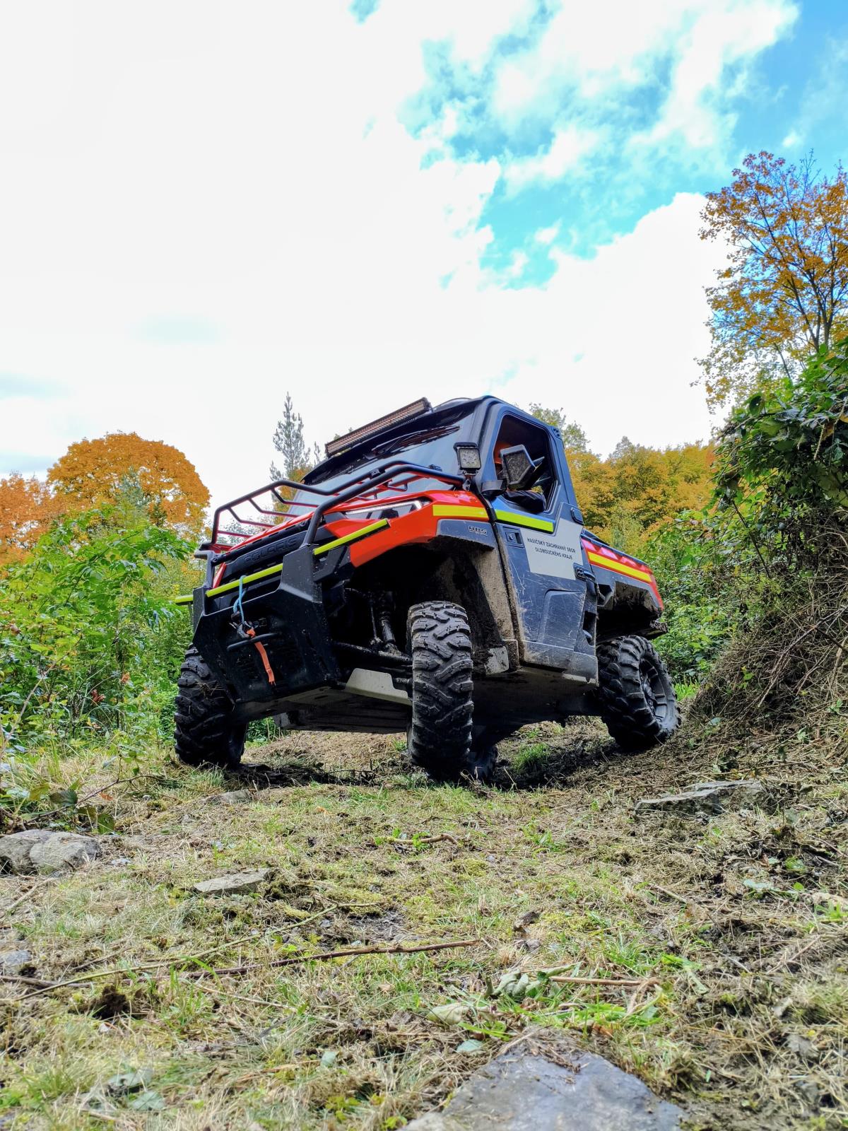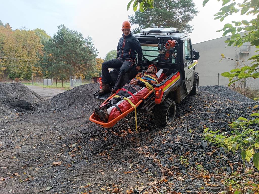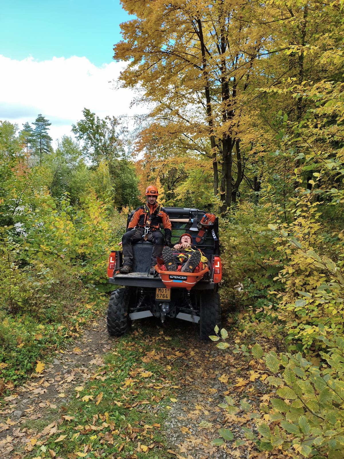 Součástí cvičení bylo i testování nového modulu nástavby na čtyřkolku POLARIS. Tato úprava umožňuje uchytit nosítka se zraněným a doprovodem přepravit osobu i v extrémně náročném terénu.