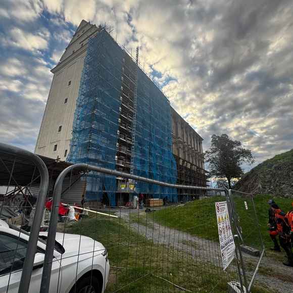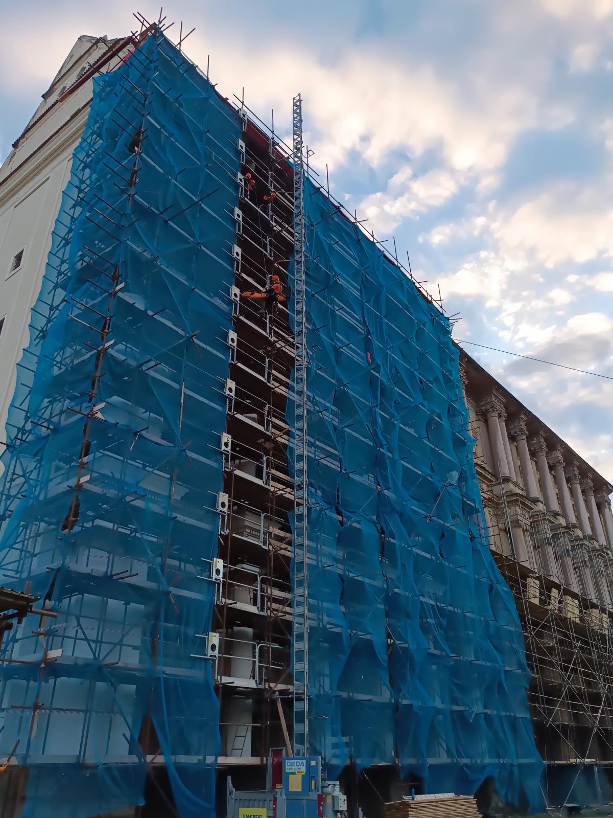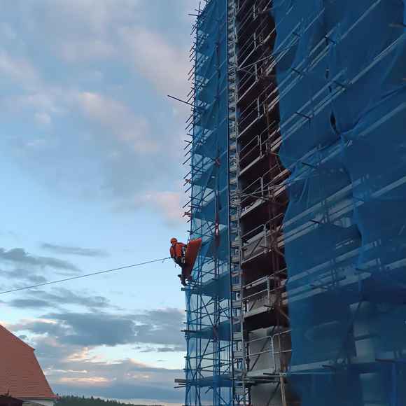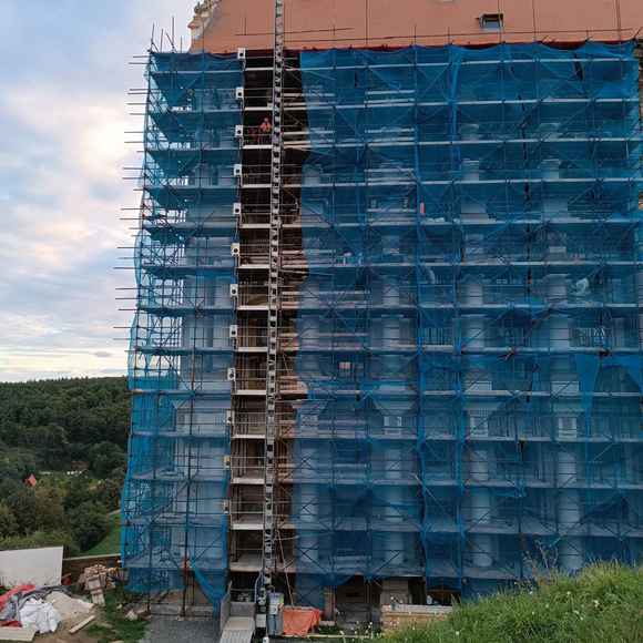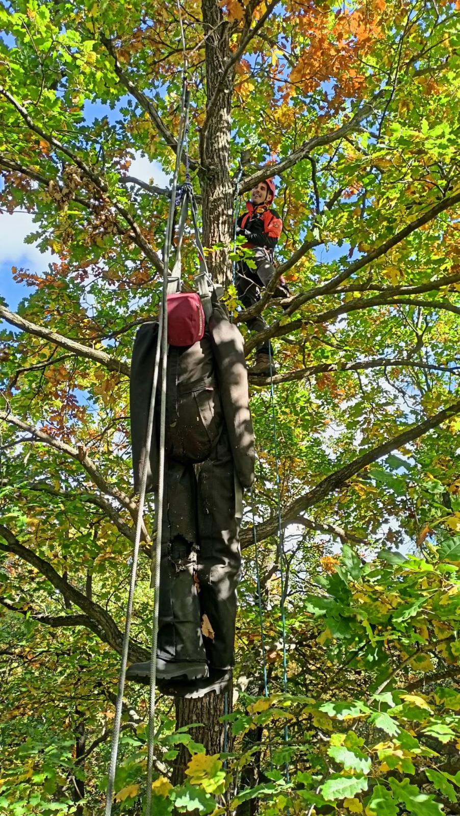 Zámek, lešení, koruny stromů, hasiči-lezci trénovali záchranu