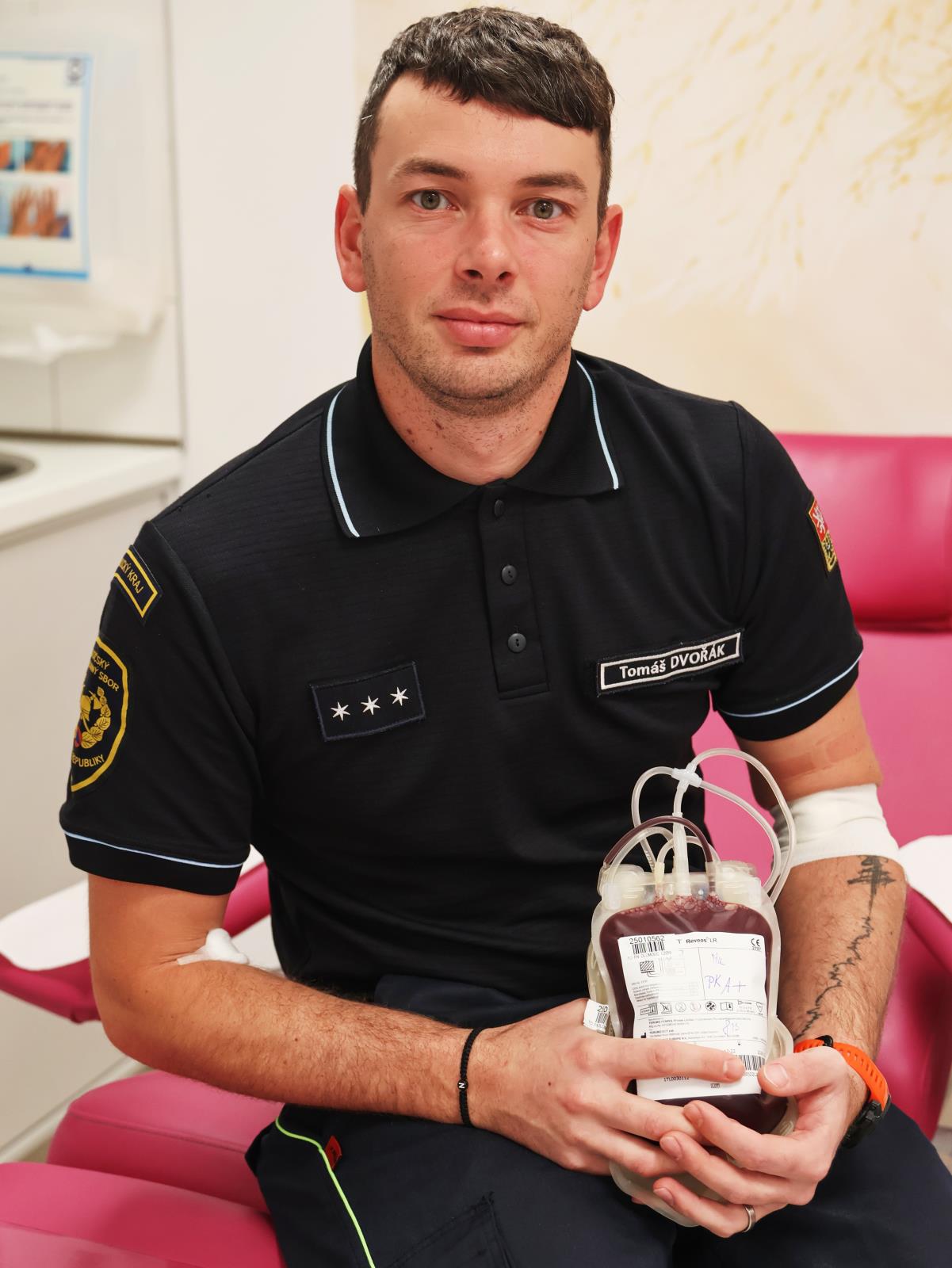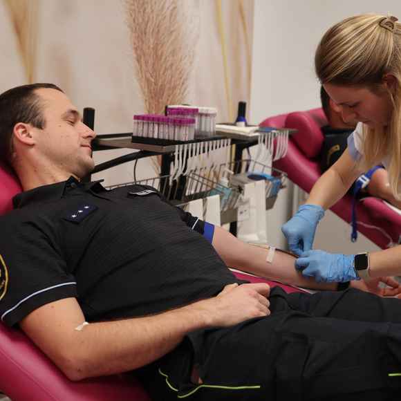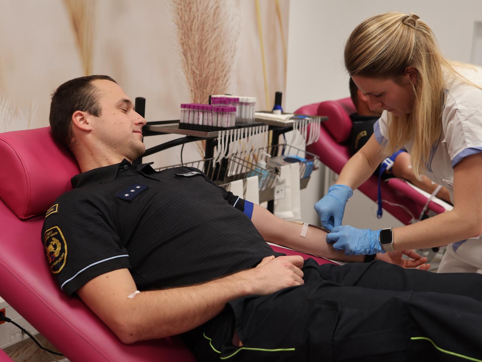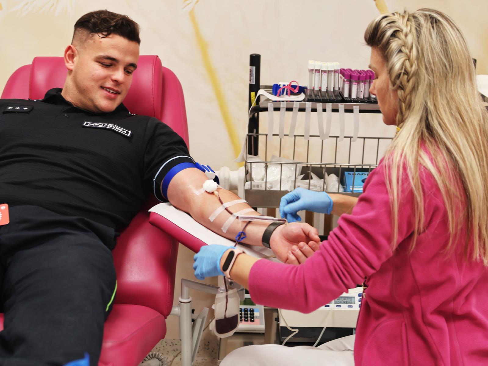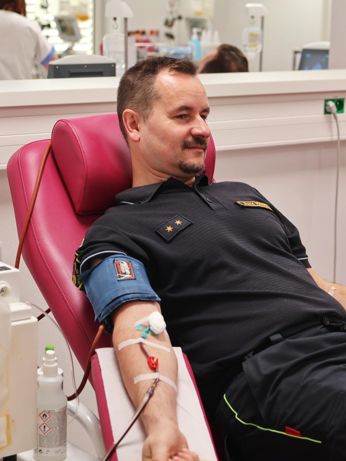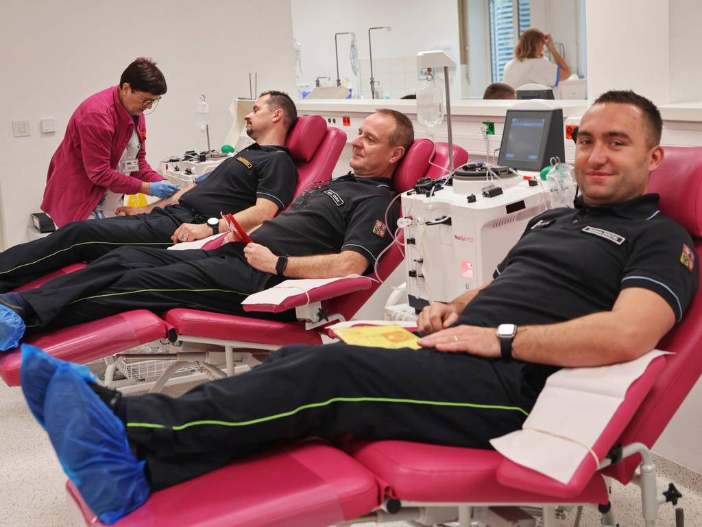 Příslušníci Hasičského záchranného sboru Olomouckého kraje se včera setkali v prostorách Transfuzního oddělení Fakultní nemocnice Olomouc, kde společně absolvovali hromadný odběr. Část hasičů darovala krev a další se zapojili odběrem plazmy. Celkem dvacet příslušníků tímto gestem pomohlo doplnit zásoby potřebné pro záchranu pacientů. Odběr měl zároveň silný pietní rozměr.