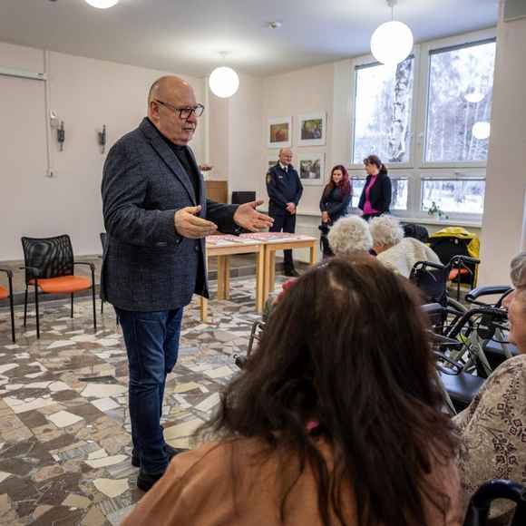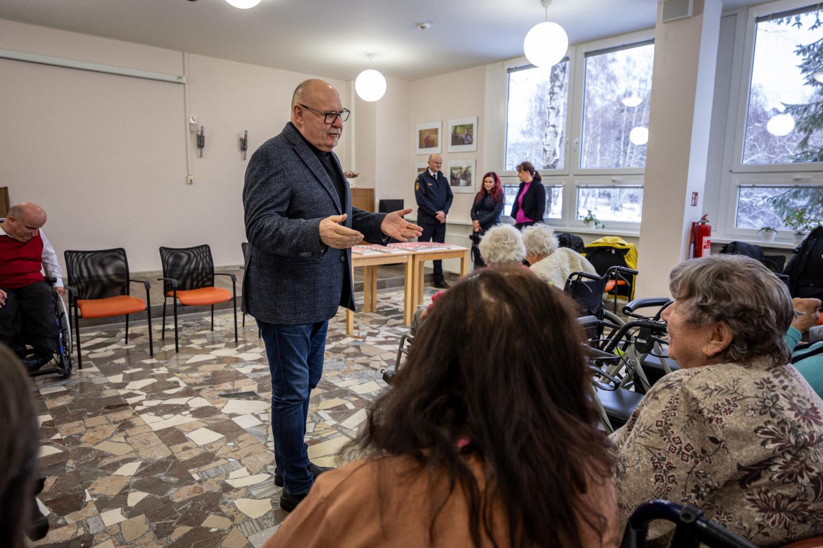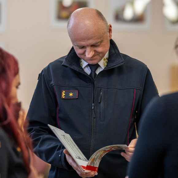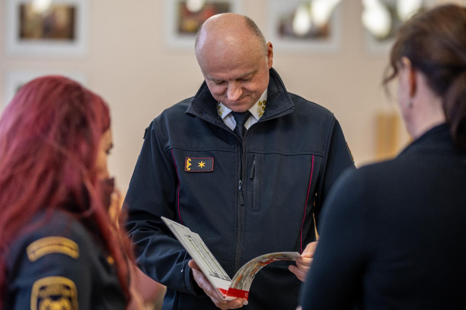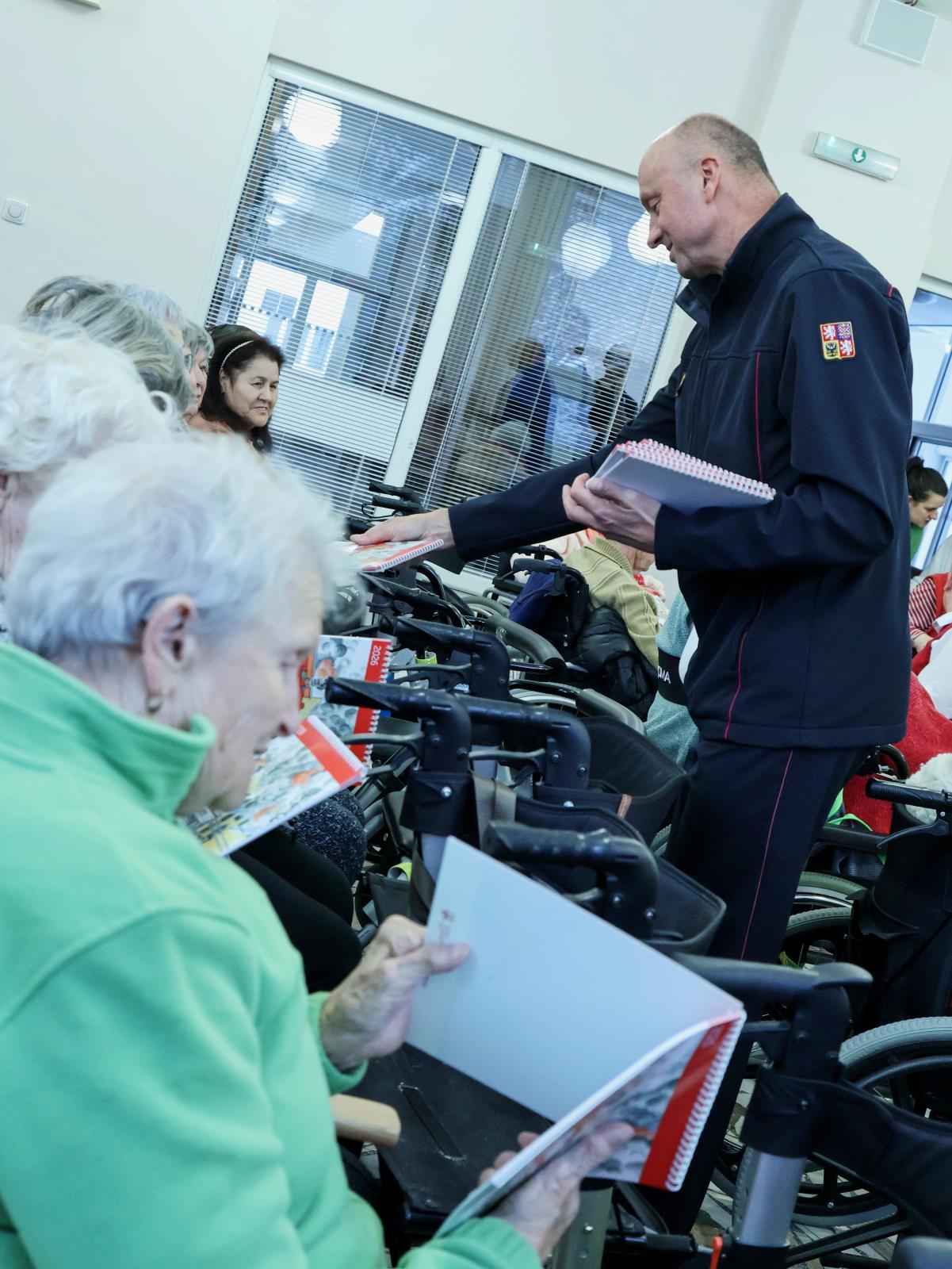 Nový kalendář na rok 2026 předali v pondělí 24. listopadu v Domově pro seniory v Šumperku brigádní generál Karel Kolářík a hejtman kraje Ladislav Okleštěk. Kreslená publikace nabízí týden po týdnu rady, jak předejít požárům, co dělat při povodni nebo na co nezapomenout, když v zimě vyrážíte autem na cesty. Ilustrace pro letošní ročník vytvořila výtvarnice Marta Mejstříková.