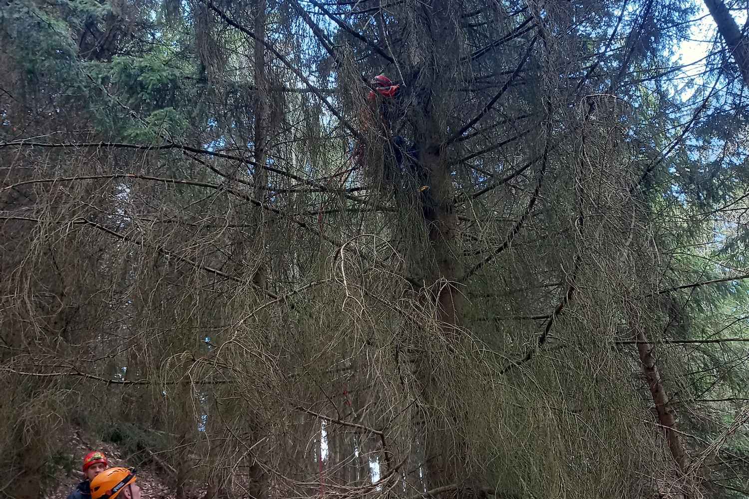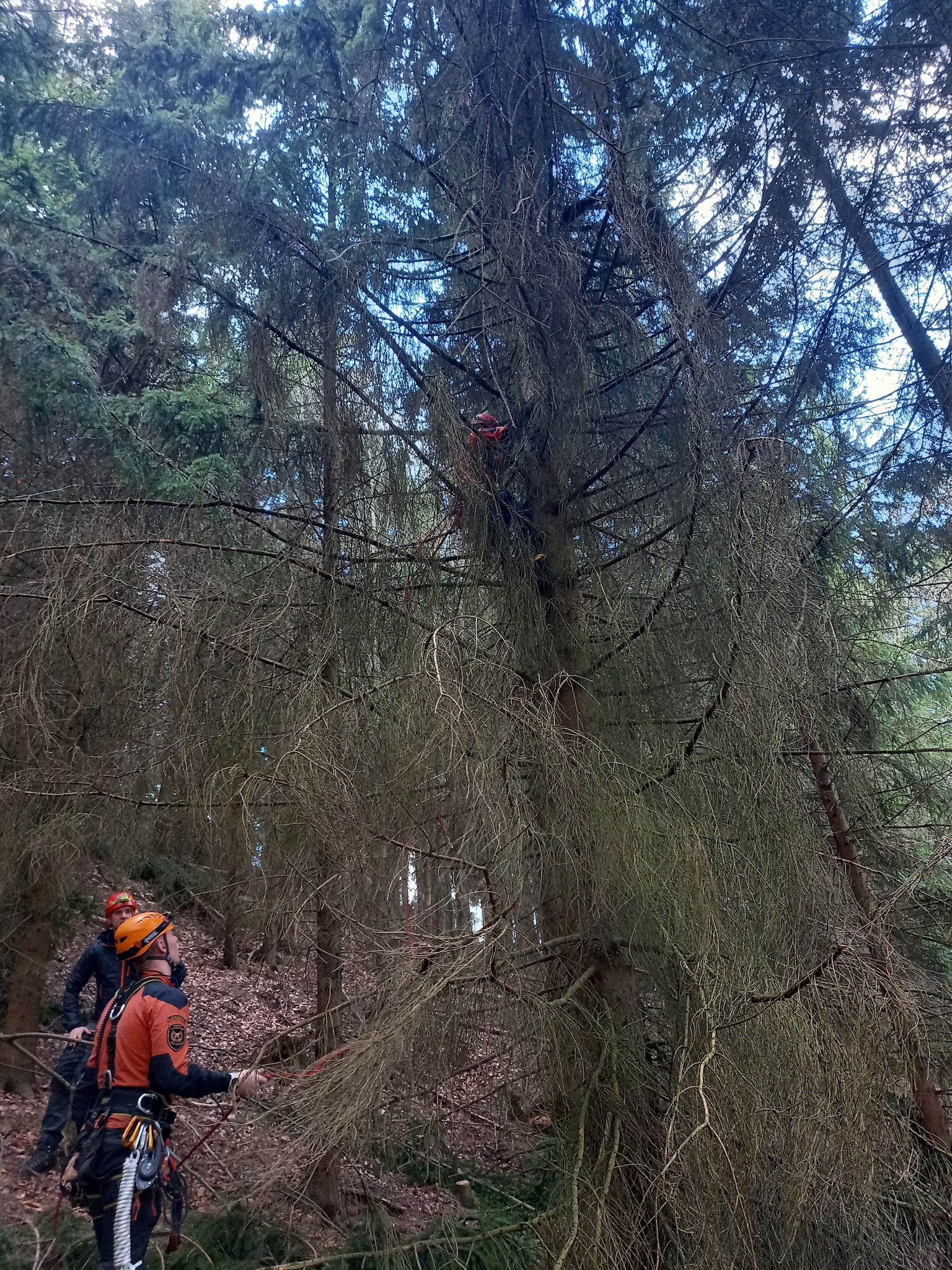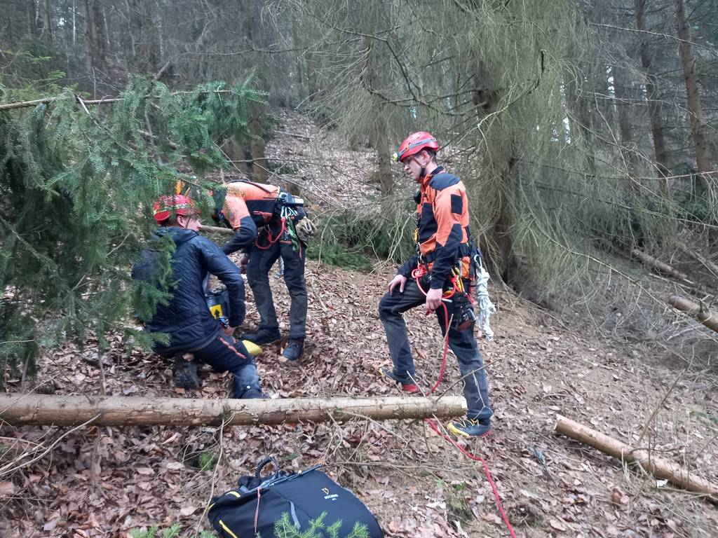 Na místo okamžitě zamířily tři jednotky hasičů společně se záchranáři a policisty. Vzhledem k výšce a nepřístupnému terénu bylo nutné nasadit lezecké družstvo.