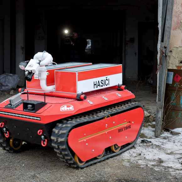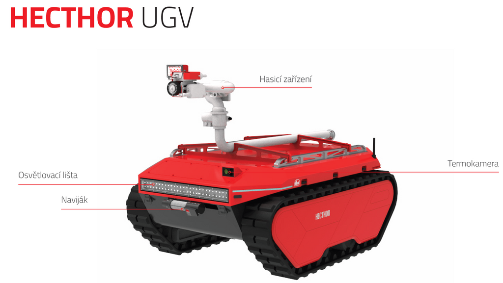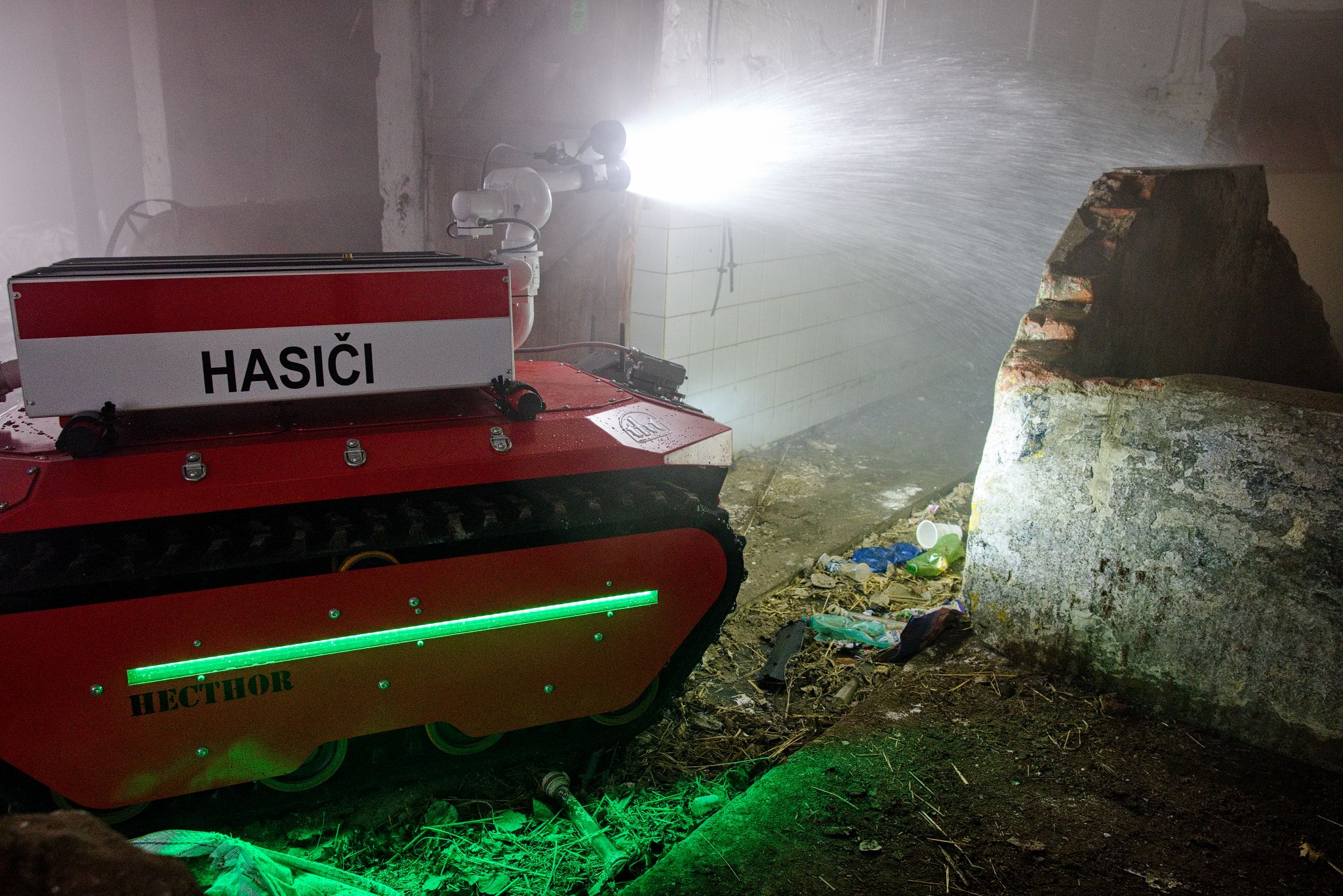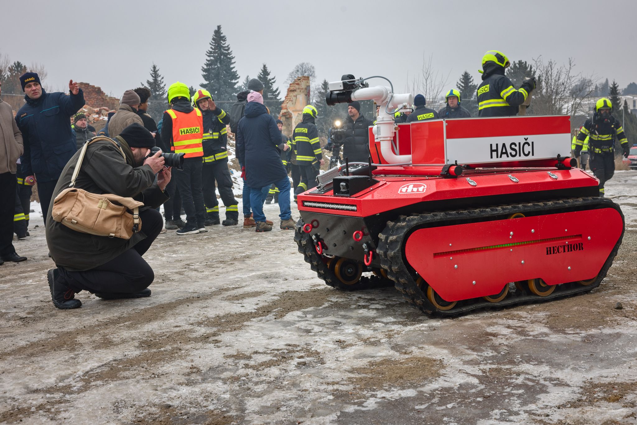 „Je to druhá generace hasicího robota na pásovém podvozku HECTHOR. Je hodně inovovaná podle zpětných vazeb, které jsme posbírali z té jedničky…“