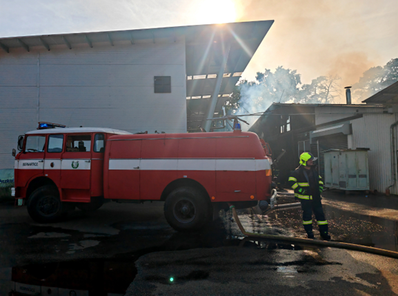 Ve středu 31.7.2024 v čase 16:42 byla jednotka povolána k požáru haly s PB lahvemi do firmy Tomegas v Branicích u Milevska. Jednotka vyjela za 4 minuty po vyhlášení poplachu. Již po cestě k místu události jsme věděli, že to nebude jen ledajaký požár, ale že bude specifický právě v tom, že se jedná o halu, která se nachází v areálu firmy Tomegas (tato firma je úložištěm propan-butanu a plnírnou láhví, společně s Jadernou elektrárnou Temelín jedinou, kdo mají v Jihočeském kraji povinnost zpracovávat nejenom vnitřní, ale i vnější havarijní plán pro případné mimořádné události s možným dopadem na obyvatelstvo žijící a pracující v bezprostřední blízkosti). Po příjezdu naší jednotky na místo události se zde již nacházela jednotka profesionálních hasičů stanice Milevsko. Střecha haly byla již v plném rozsahu hoření, naše jednotka nasadila 3 útočné proudy a dále i proud lafetové proudnice naší cisterny. Na místo mezitím přijížděly i další jednotky. Požár se nám podařil lokalizovat cca za hodinu a poté začaly dohašovací práce různých ohnisek. Po dohodě s velitelem zásahu naše jednotka zůstala na požářišti hlídat až do jedné hodiny ranní, kdy byla vystřídána profesionálními hasiči stanice Milevsko.