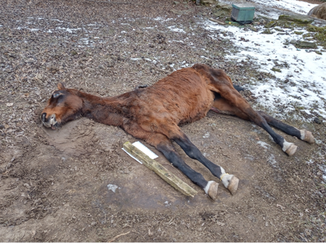 Na žádost KOPIS KV vyjela jednotka k události technická pomoc. Jízda na místo zásahu proběhla bez komplikací. Po příjezdu na místo je průzkumem zjištěno, že se jedná o pomoc s likvidací kadáveru v soukromém chovu. Na místě zasahuje PČR a HZS Karlovy Vary. Členové jednotky byli vybaveni jednorázovými obleky pro práci v kontaminovaném prostředí a pak soustřeďovali uhynulé kusy zvířat na jedno místo. Tyto potom pomáhali nakládat na zemědělskou techniku, která je odvezla. Dále jsme plnili pokyny VZ.