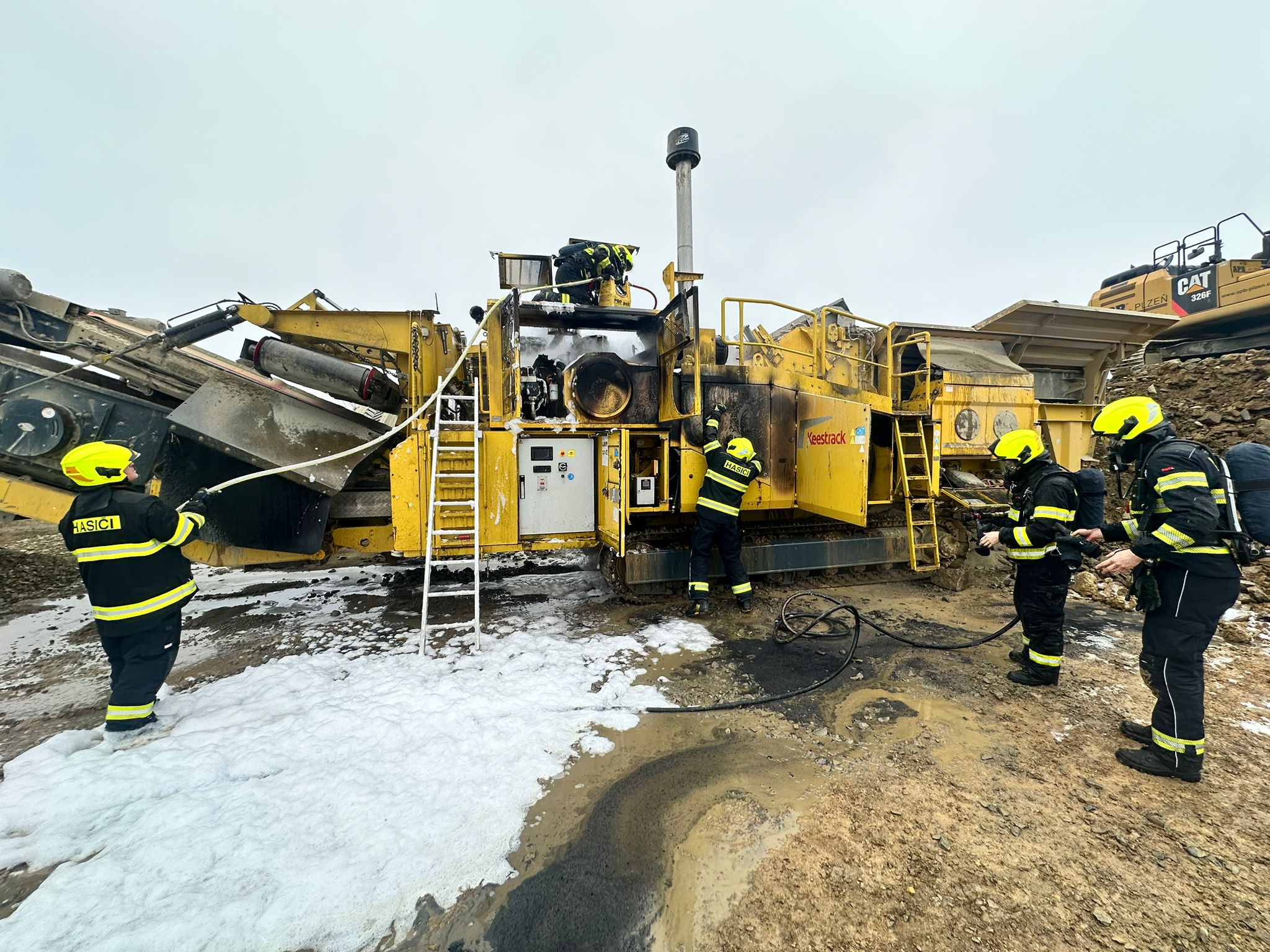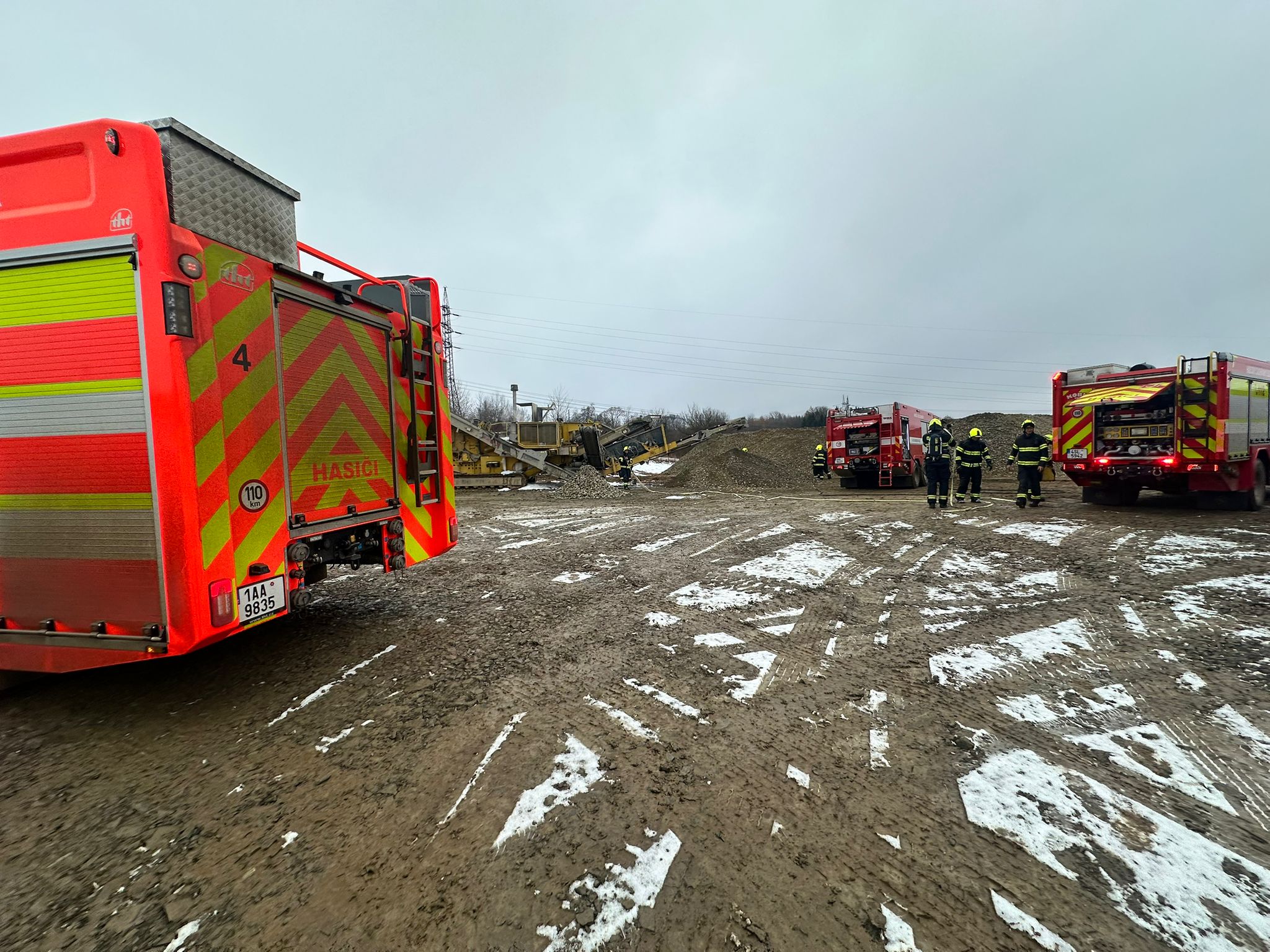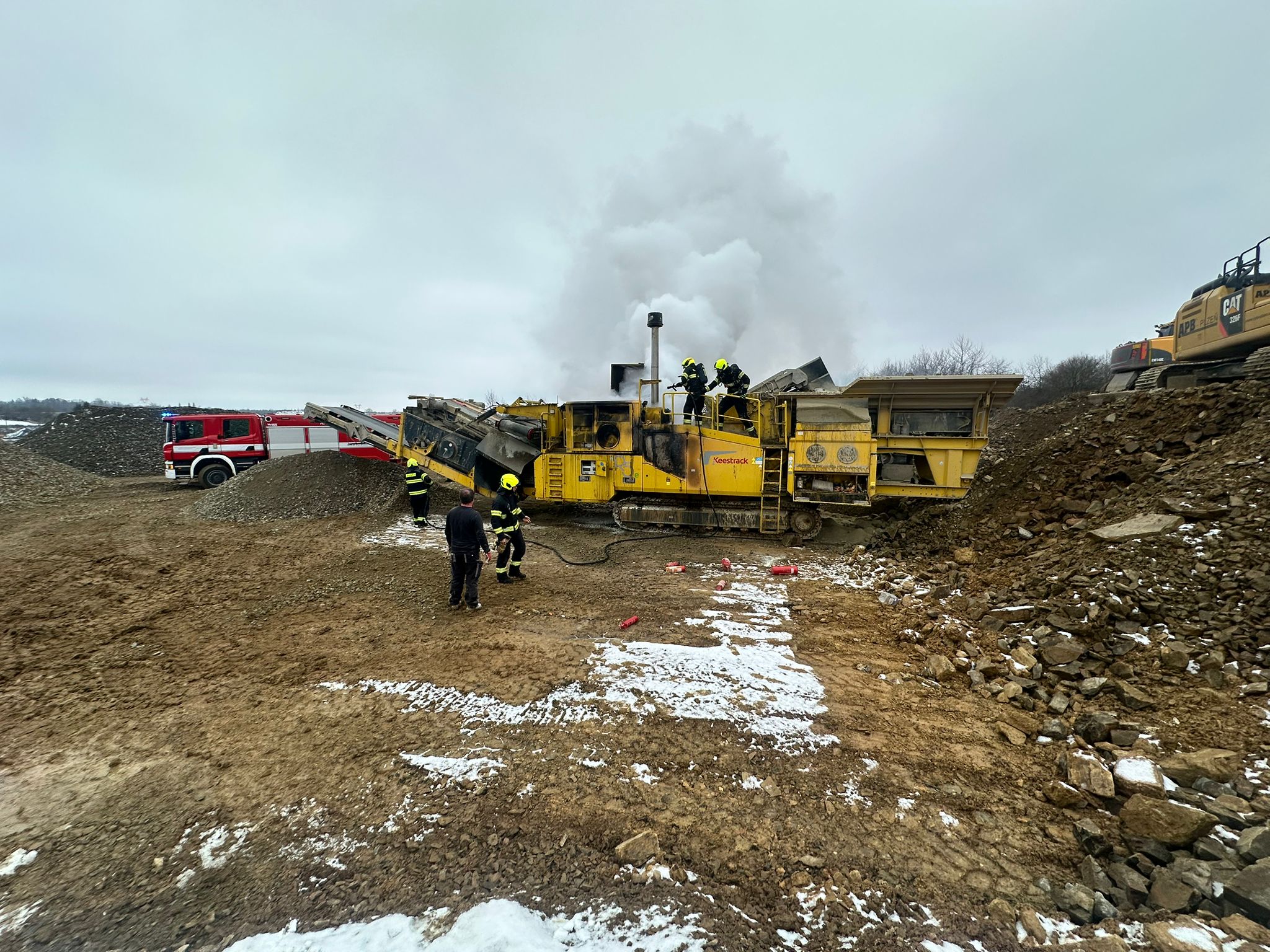 Mezikrajská spolupráce hasičů při požáru stavebního stroje