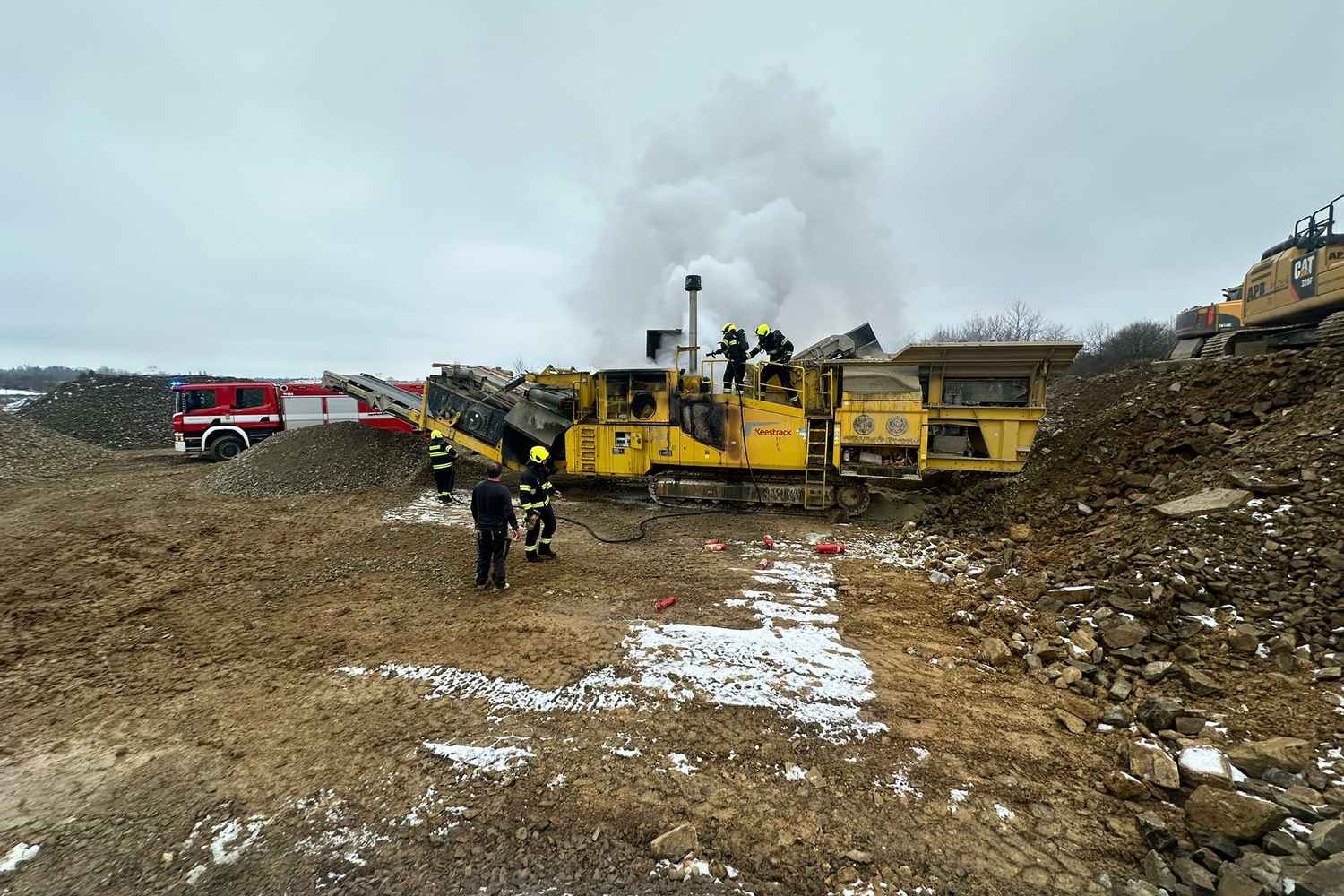 Včera krátce před jednou hodinou odpoledne vyjížděly jednotky hasičů k požáru velkého zemního stroje, konkrétně drtiče kamene, na stavbě Pražského okruhu v katastru pražských Kolovrat. Na místě zasahovaly i jednotky v rámci mezikrajské spolupráce.