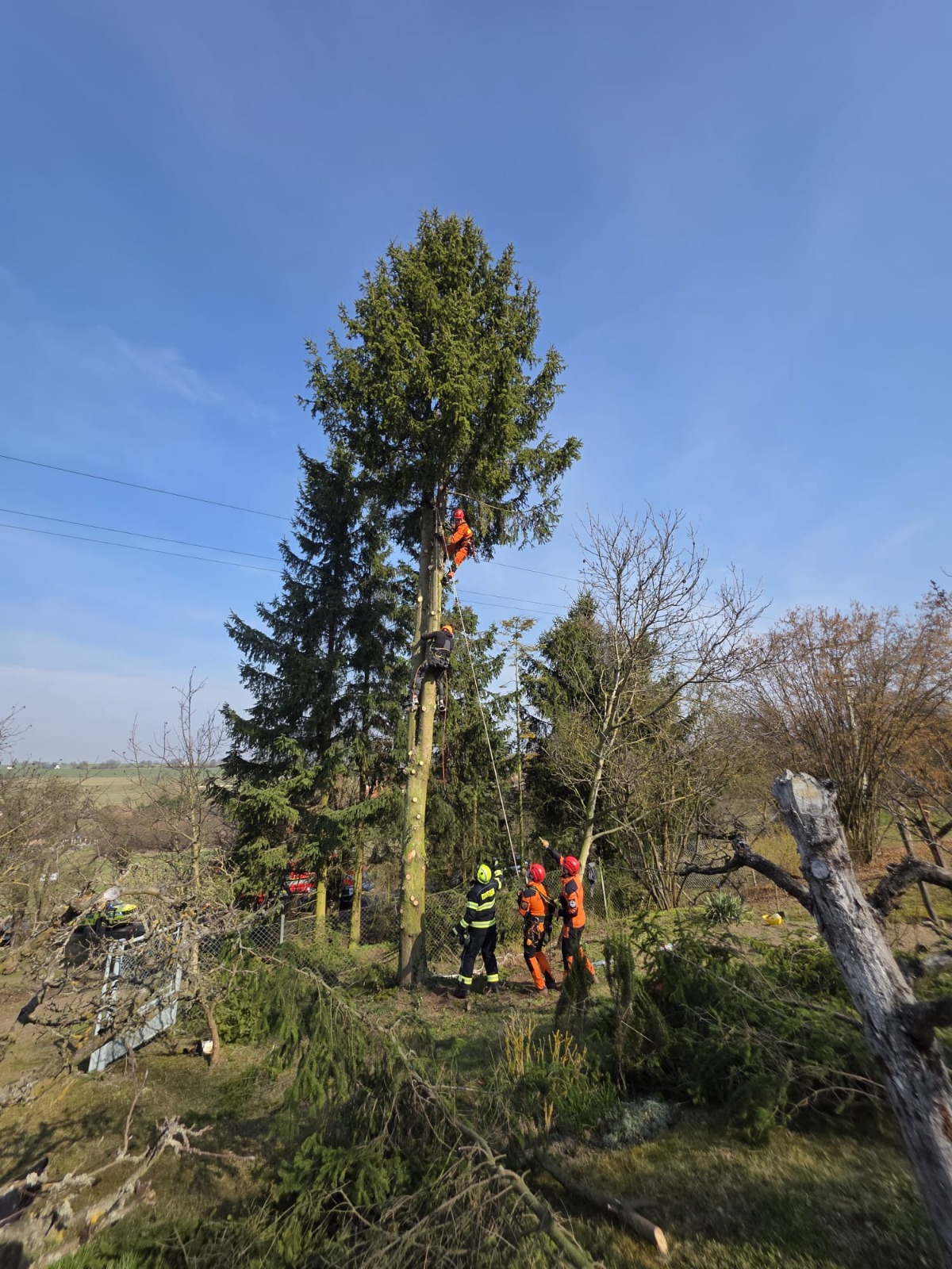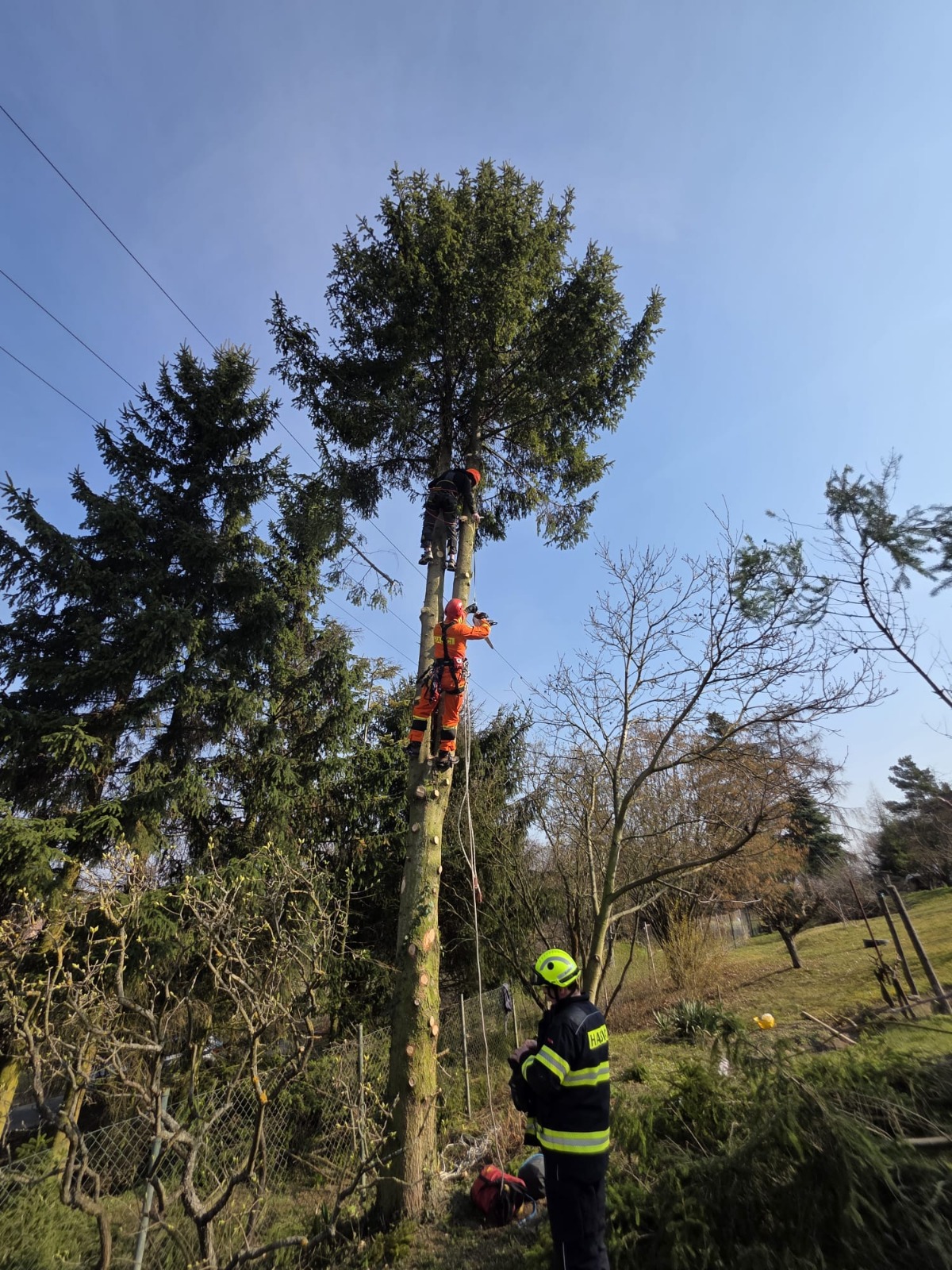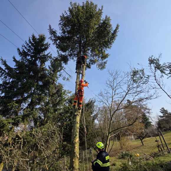 Dnes dopoledne zasahovaly jednotky u mimořádné události v obci Makotřasy na Kladensku, kde zůstal po zásahu elektrickým proudem zraněný muž ve výšce několika metrů na stromě. Na místo vyjeli profesionální hasiči z Kladna, jejich lezecké družstvo, automobilový žebřík a také dobrovolná jednotka z Hřebče.