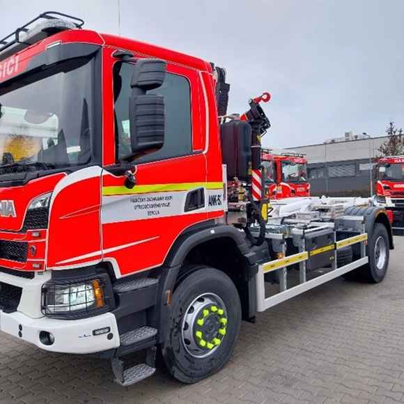 Automobilový nosič kontejnerů Scania 4×4 s hydraulickou rukou nahrazuje techniku sloužící u HZS Středočeského kraje od roku 1995. Nové vozidlo je vybaveno hydraulickou rukou s nosností až 4 tuny, což zjednodušuje manipulaci s kontejnery i dalšími břemeny. Nasazení najde především u technických zásahů, zásahů spojených s únikem nebezpečných látek nebo u speciálních požárů s kombinovaným hasicím kontejnerem.