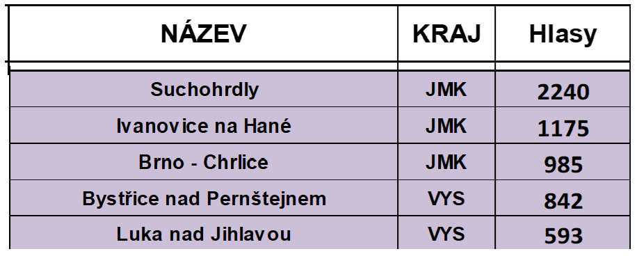 Nejvíce hlasu napříč jednotkami 🏆 Suchohrdly (Jih Moravy - JMK) - 2240