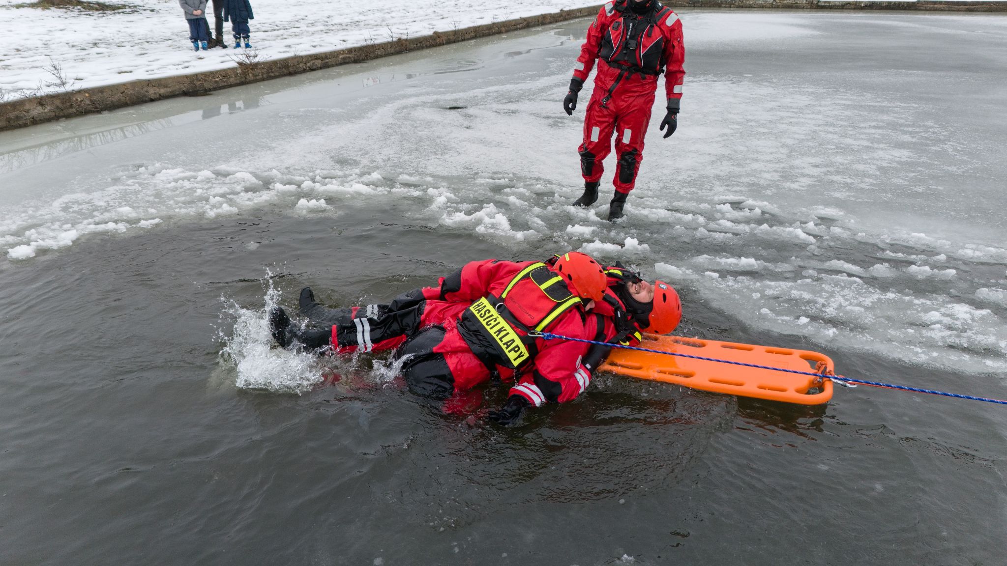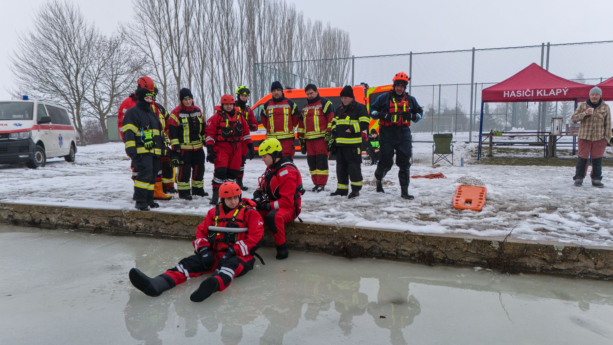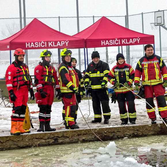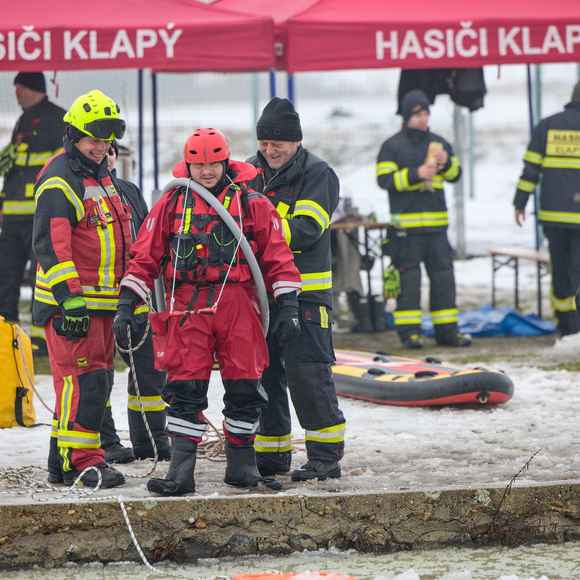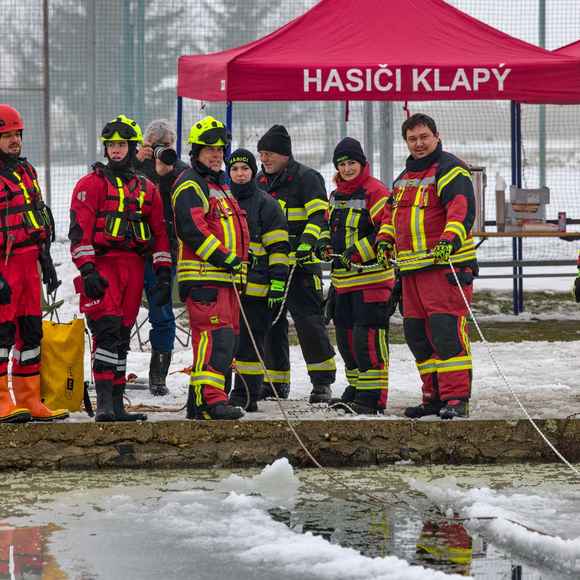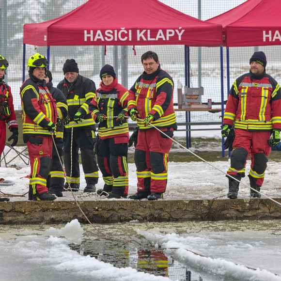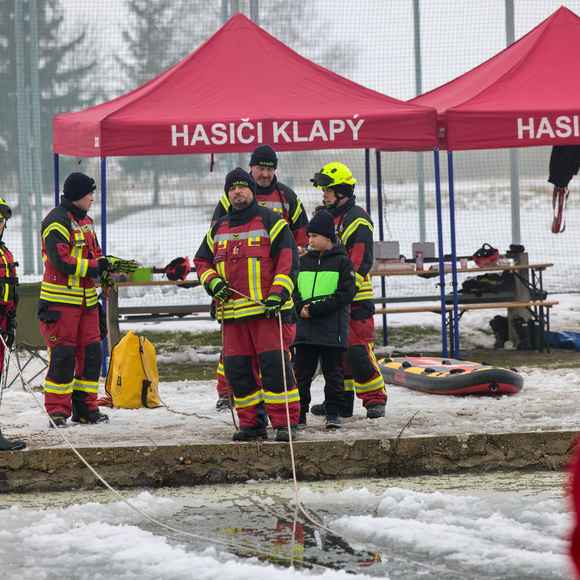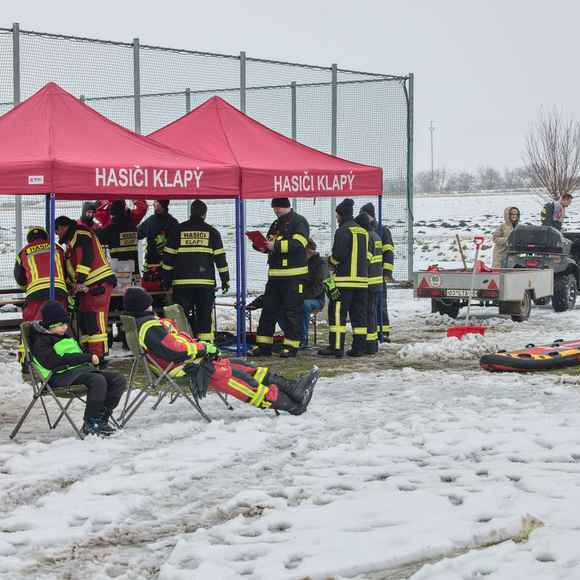Na požární nádrži v Klapém se sešlo zhruba 30 dobrovolných hasičů ze čtyř jednotek Litoměřicka, aby si pod vedením dvou školitelů HZS Ústeckého kraje vyzkoušeli záchranu osoby z ledu – v reálných podmínkách oblevy, mokrého sněhu a vody o teplotě okolo 2 °C. Nechyběla instruktáž, porovnání vybavení ani netradiční pomůcky včetně rescue paddleboardu.
