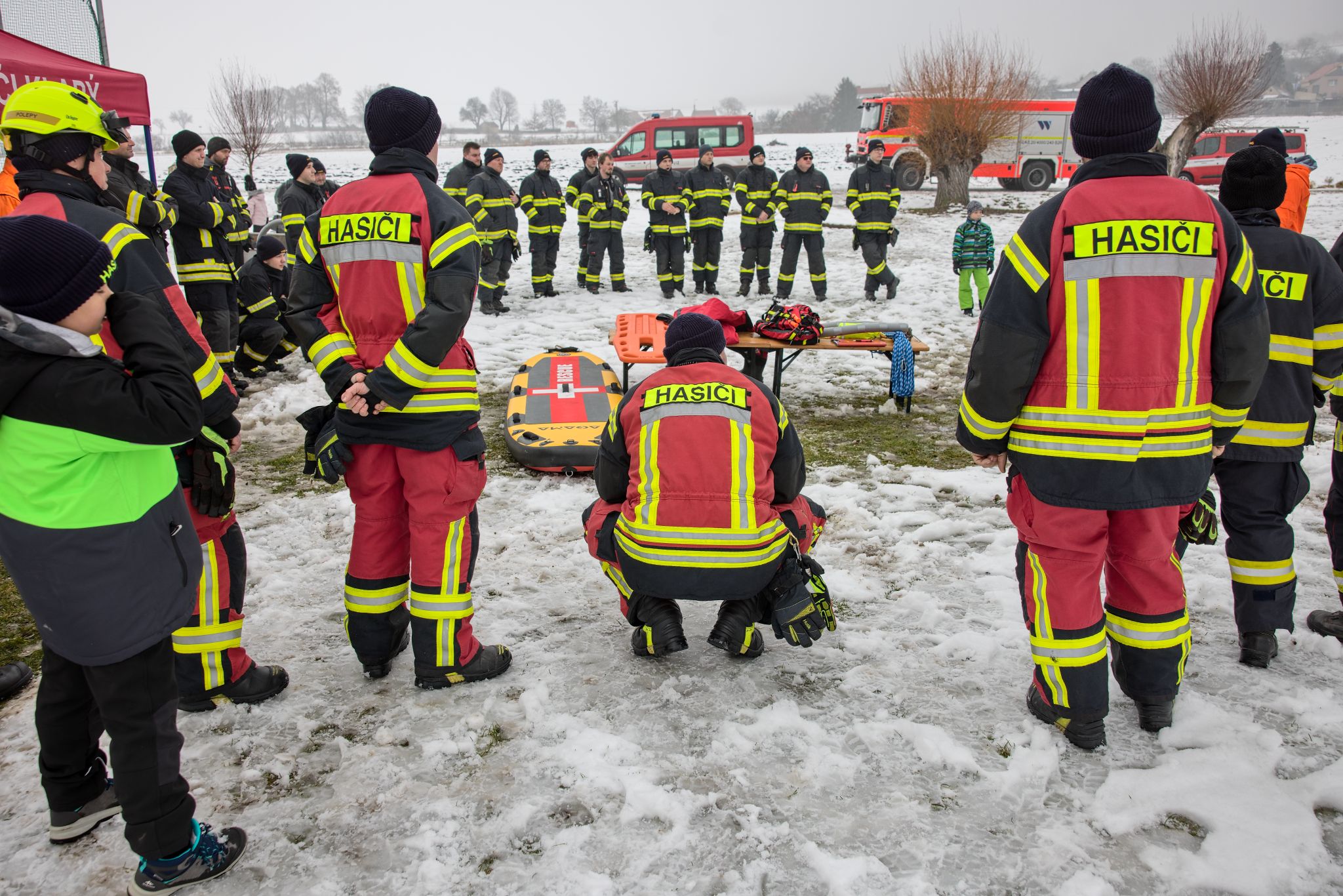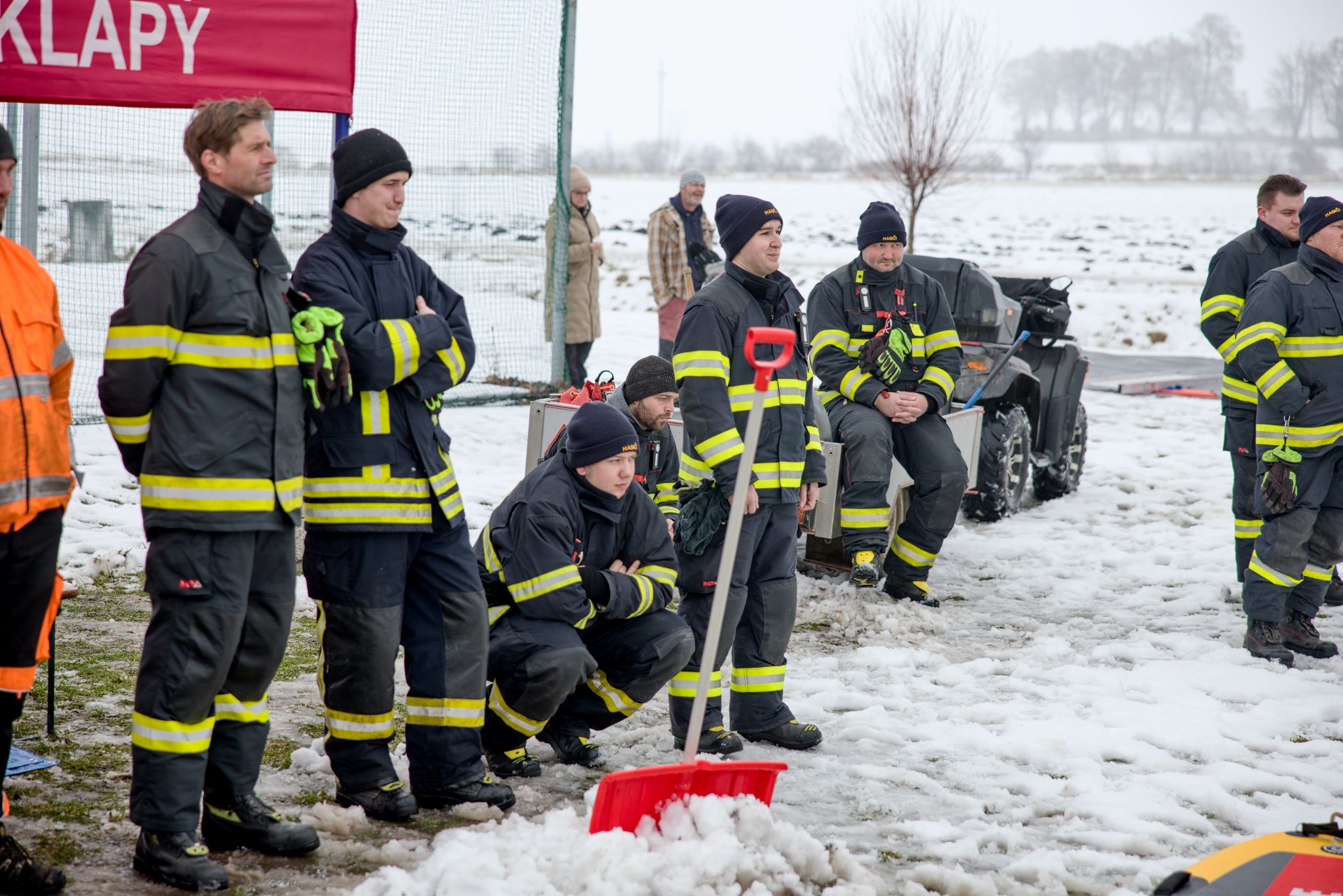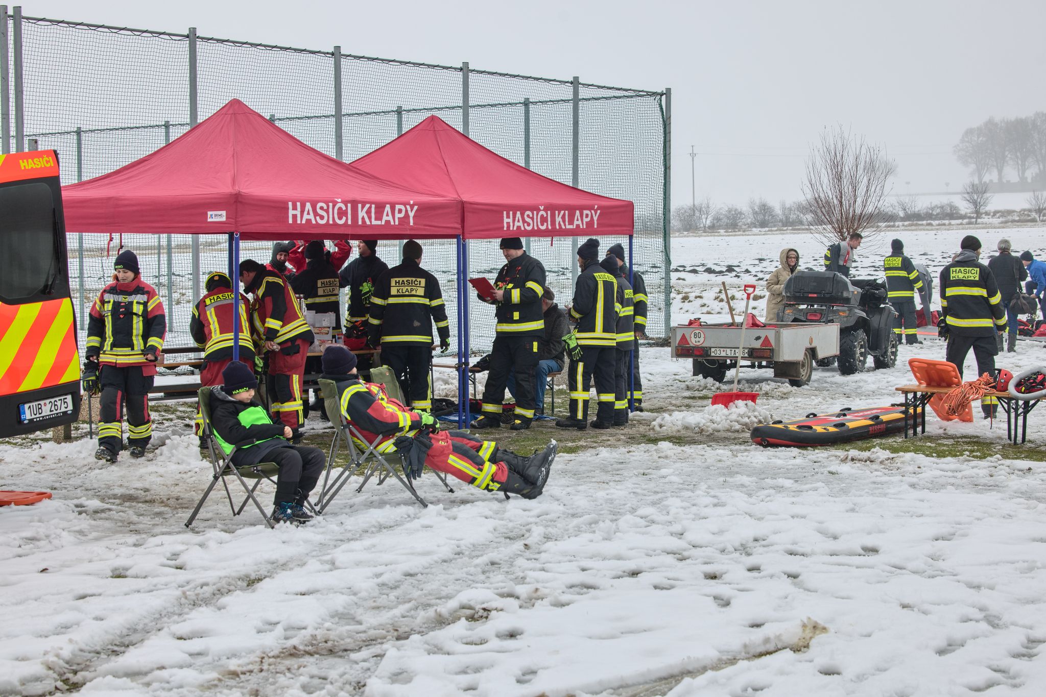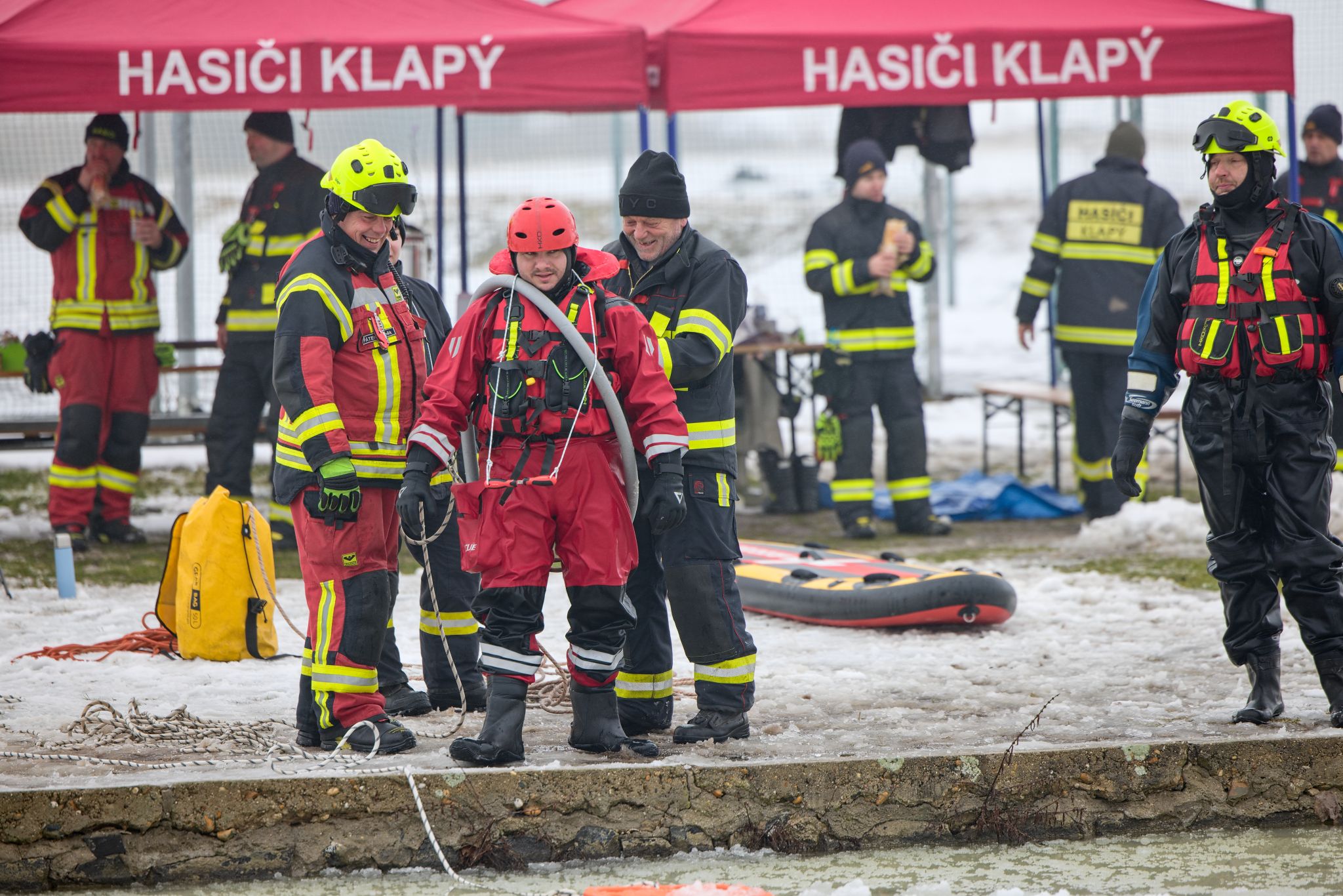 Na požární nádrži v Klapém se sešlo zhruba 30 dobrovolných hasičů ze čtyř jednotek Litoměřicka, aby si pod vedením dvou školitelů HZS Ústeckého kraje vyzkoušeli záchranu osoby z ledu – v reálných podmínkách oblevy, mokrého sněhu a vody o teplotě okolo 2 °C. Nechyběla instruktáž, porovnání vybavení ani netradiční pomůcky včetně rescue paddleboardu.