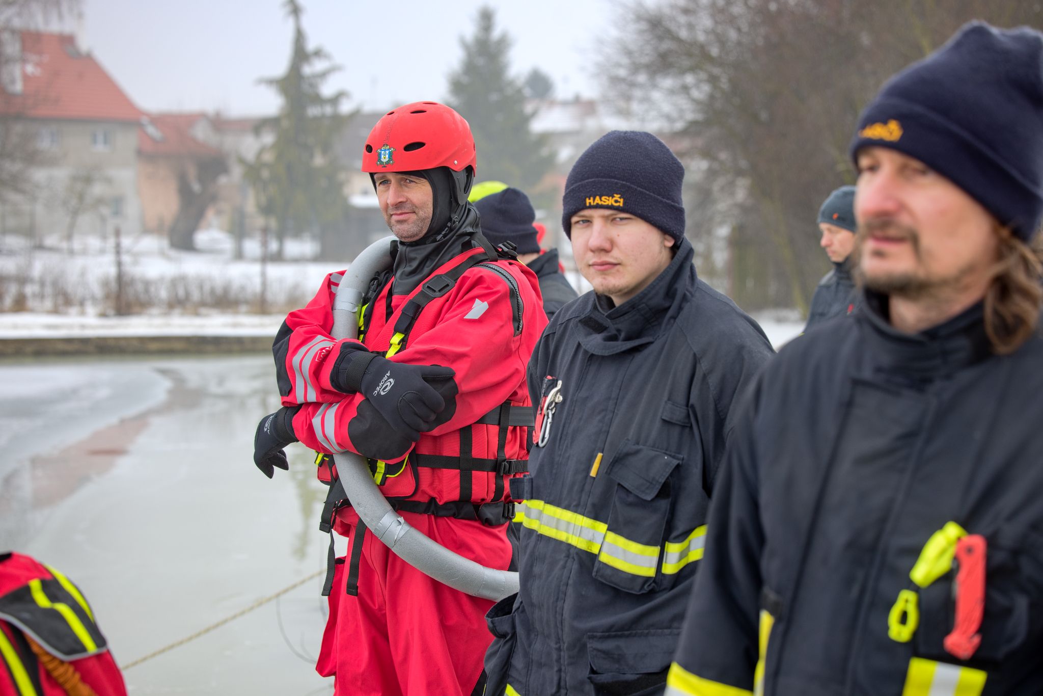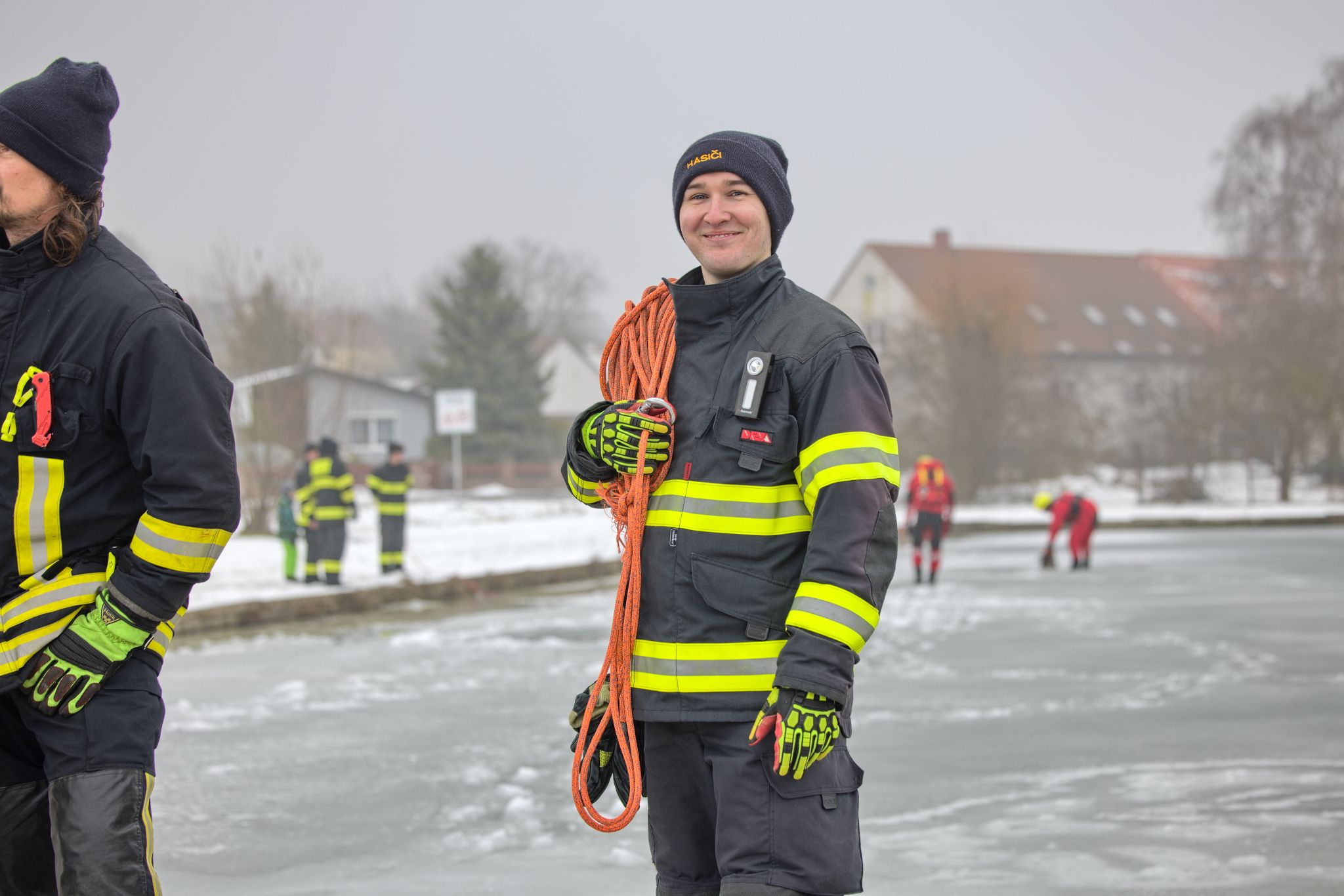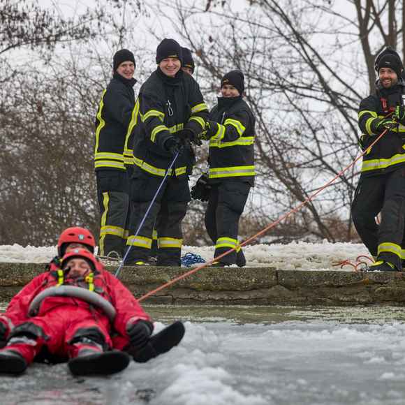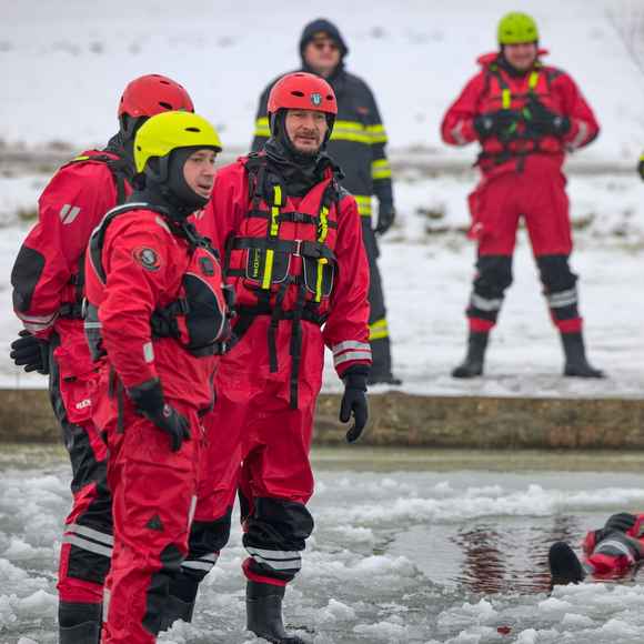 Hasiči nejprve prošli společnou instruktáží: co funguje, co je naopak riziko a jaké jsou výhody a limity jednotlivých částí výstroje a vybavení. Tohle je přesně ten typ tréninku, kde se ukáže rozdíl mezi teorií a realitou – na ledu totiž rozhodují detaily (pohyb, jištění, komunikace, práce ve dvojici/týmu).