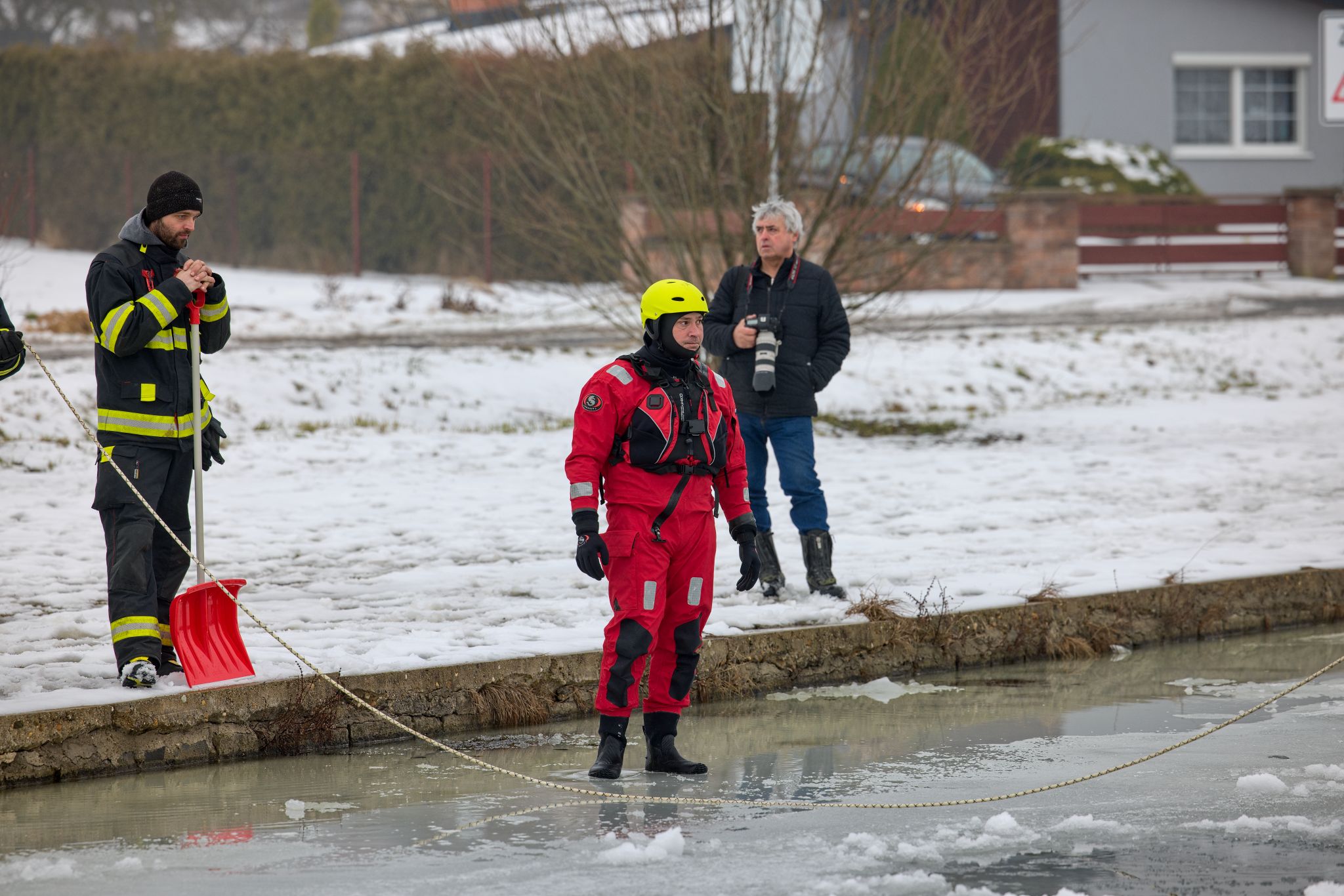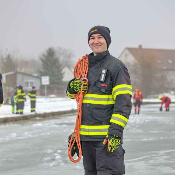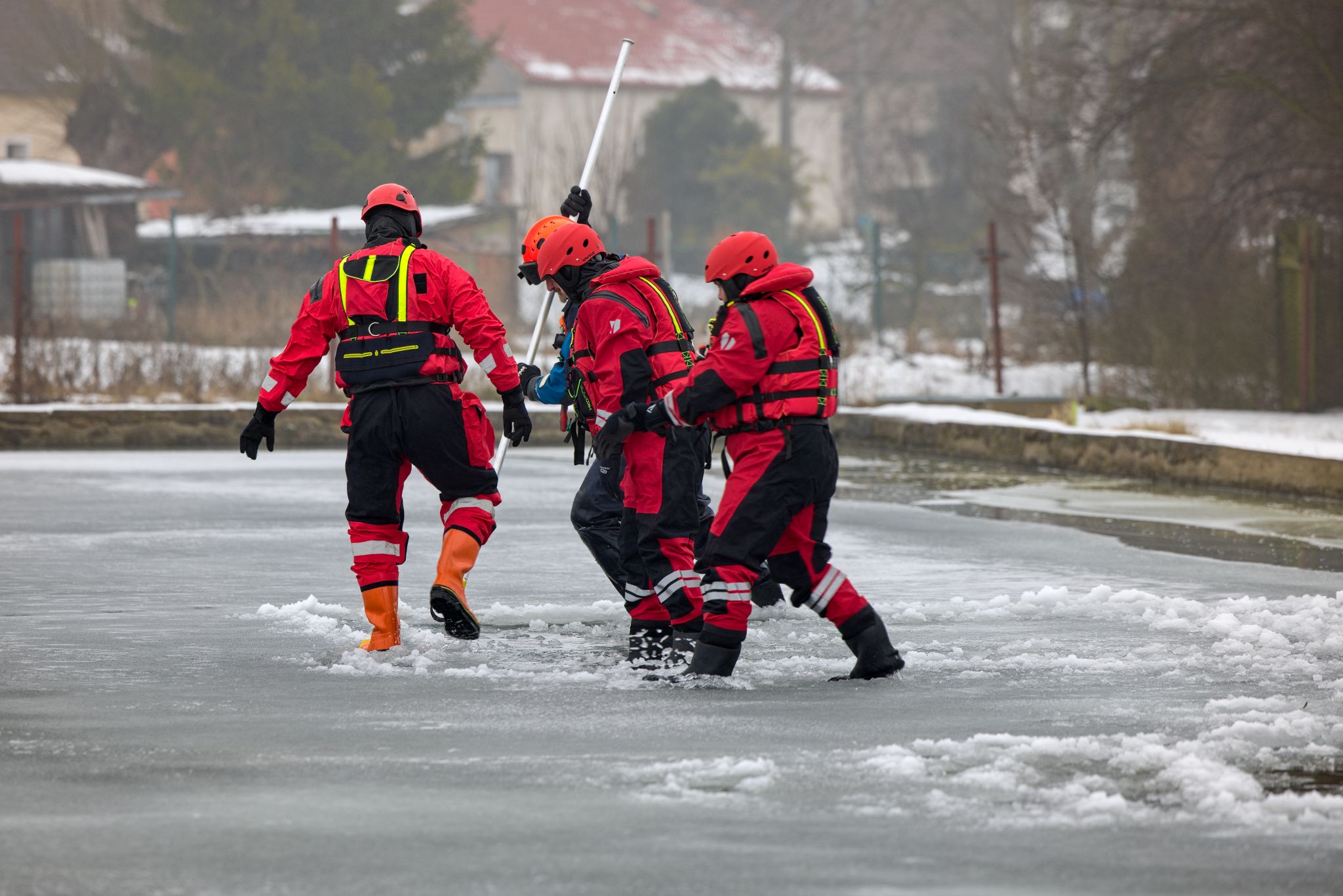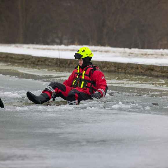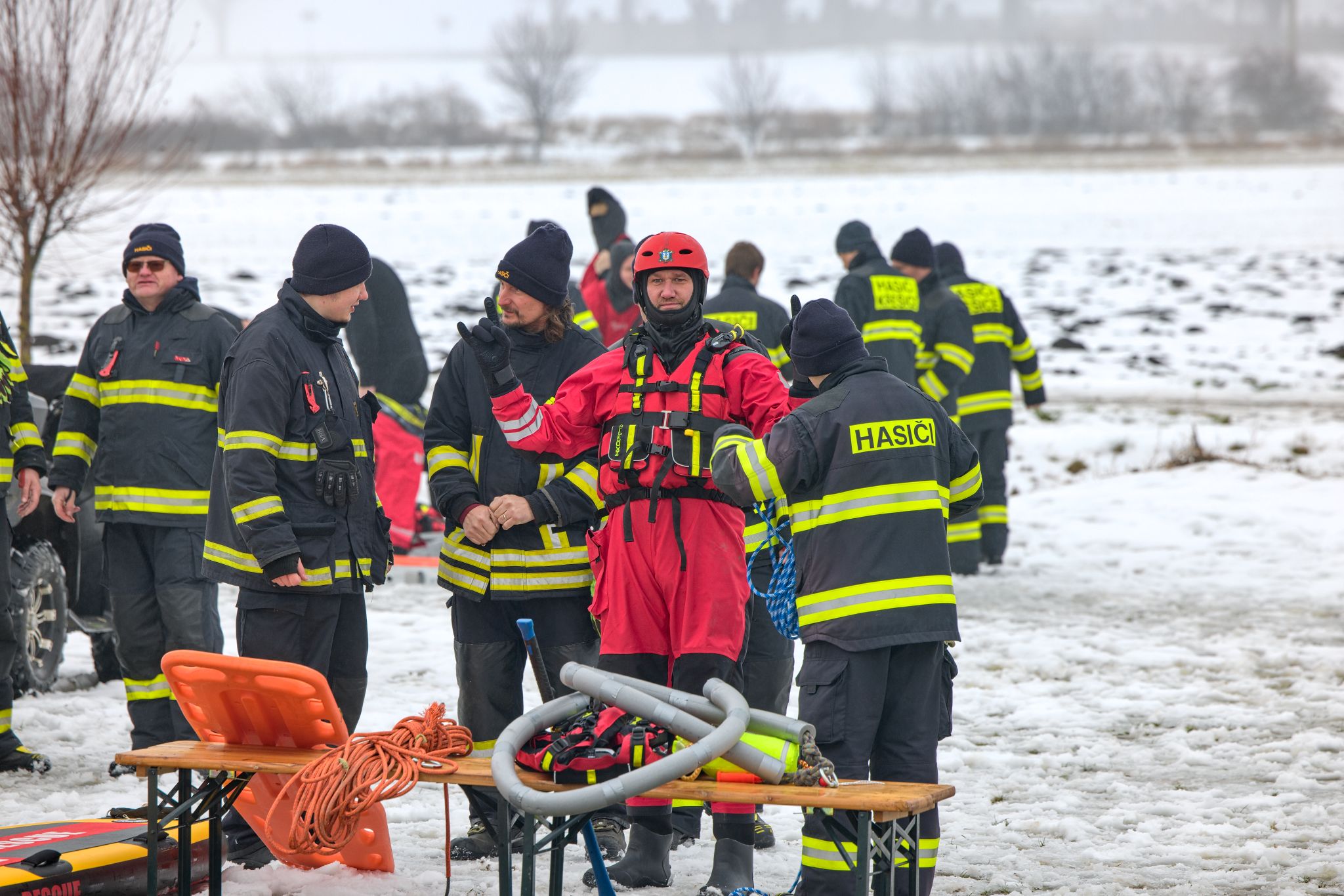 Hasiči nejprve prošli společnou instruktáží: co funguje, co je naopak riziko a jaké jsou výhody a limity jednotlivých částí výstroje a vybavení. Tohle je přesně ten typ tréninku, kde se ukáže rozdíl mezi teorií a realitou – na ledu totiž rozhodují detaily (pohyb, jištění, komunikace, práce ve dvojici/týmu).