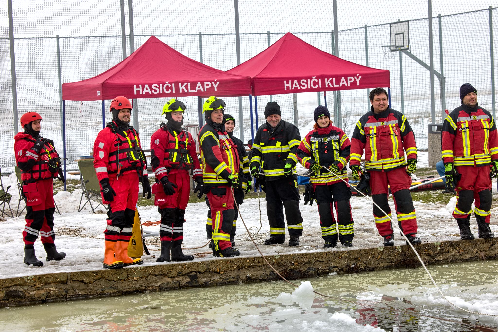 Cvičení proběhlo na požární nádrži Klapý za účasti jednotek Klapý, Polepy, Křešice a Hrobce. Led měl přibližně 8 cm, ale obleva z něj udělala zrádnou plochu – byl pokrytý vrstvou mokrého sněhu, který zhoršuje orientaci i odhad pevnosti ledu. Pod ledem čekala voda o teplotě kolem 2 °C.