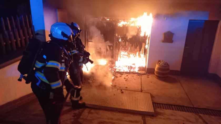 "Po příjezdu na místo bylo zjištěno plamenné hoření ve sklepních prostorách, zásah byl veden vysokotlakým hašením. Ve sklepě byla nalezena mimo jiné 10kg propanbutanová lahev, kterou hasiči vynesli ven z objektu a následně ji ochlazovali," uvedla mluvčí hasičů por. Martina Götzová, MBA.