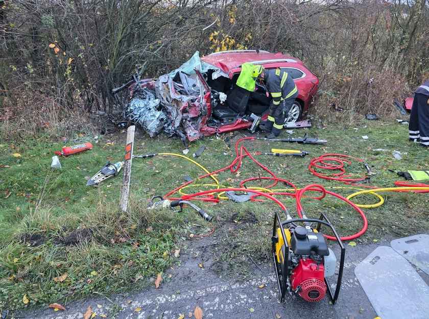 Řidič osobního vozu zůstal po nárazu zaklíněný ve zdemolovaném automobilu, a hasiči jej museli pomocí dvou hydraulických vyprošťovacích sad opatrně vyprostit. Během zásahu mu zastavili silné krvácení pomocí turniketu a následně jej předali do péče zdravotnické záchranné služby.