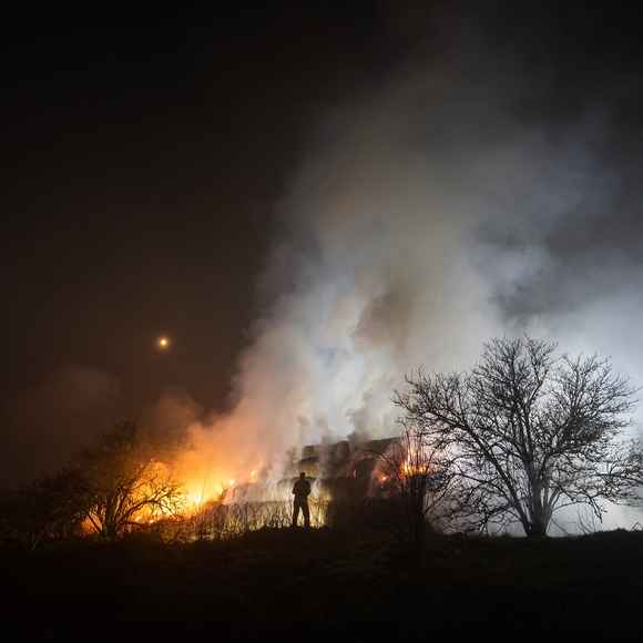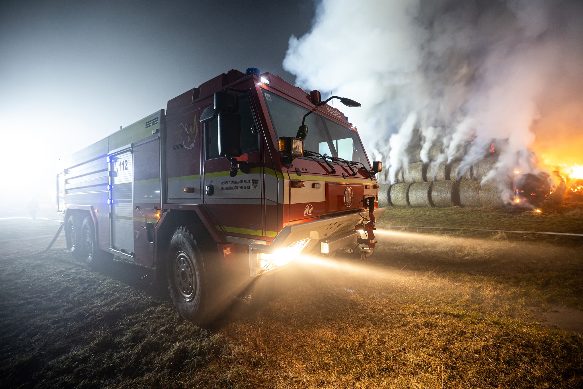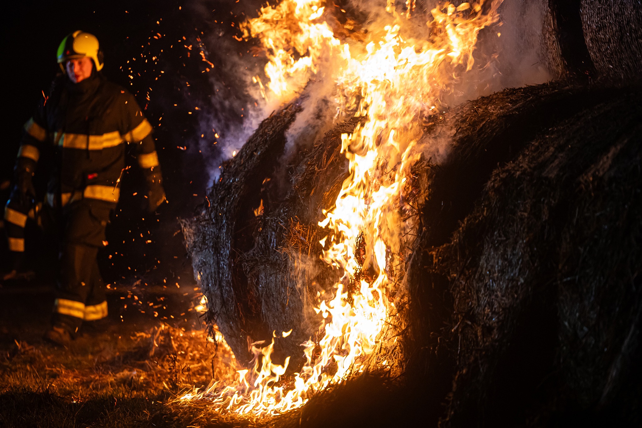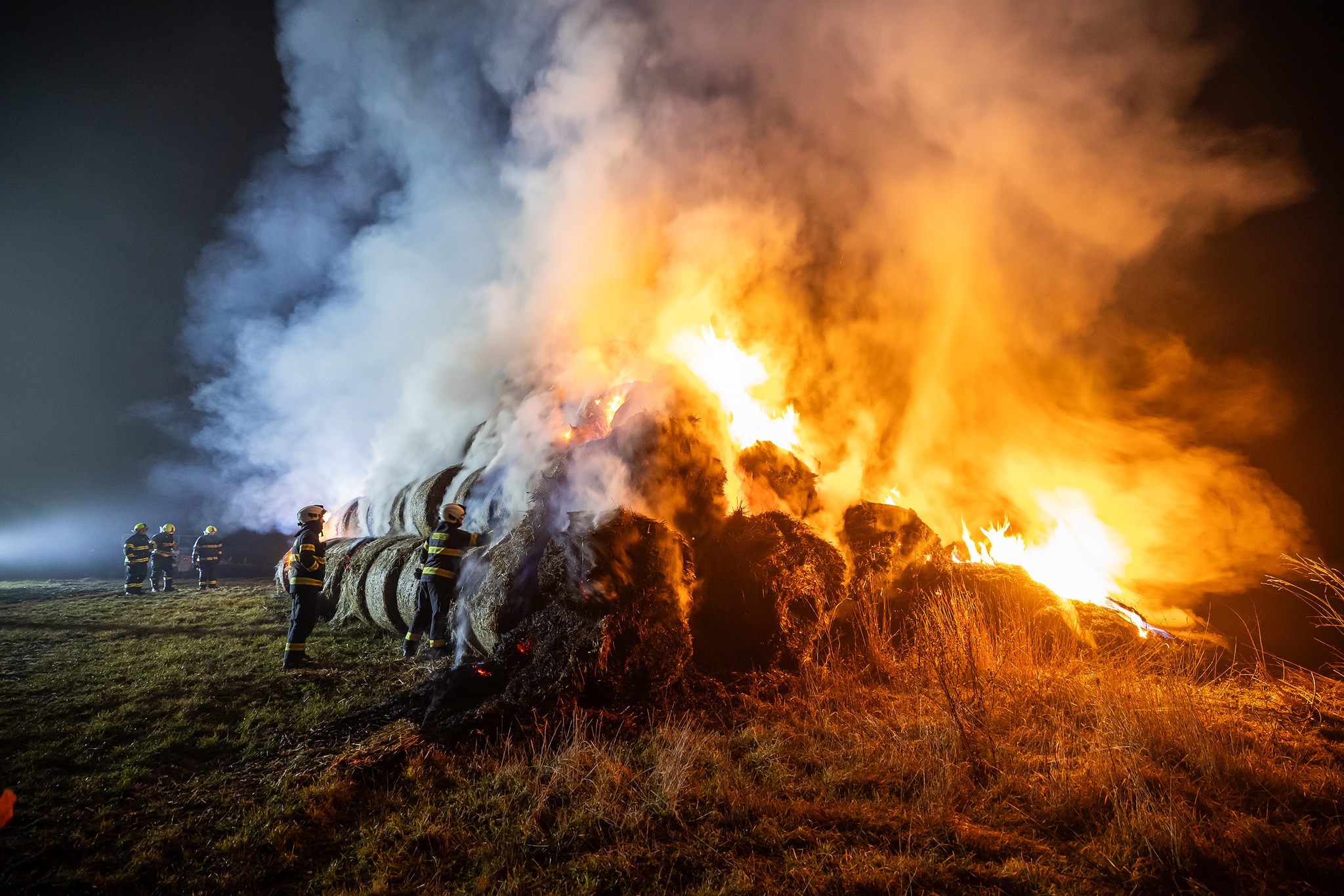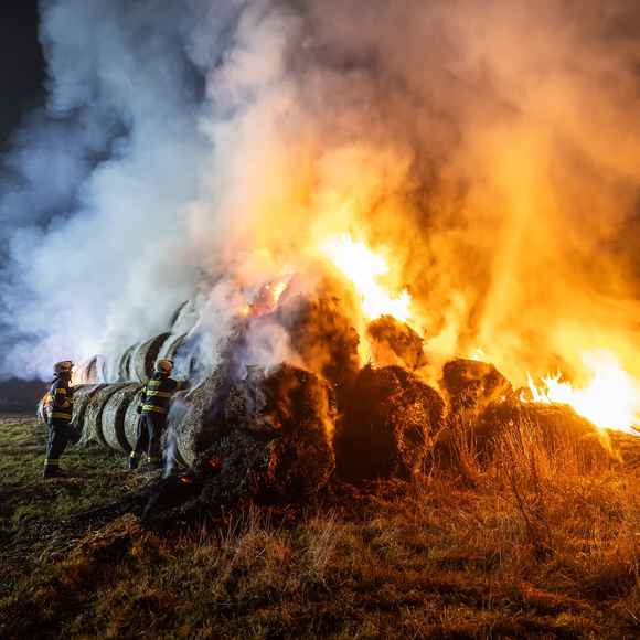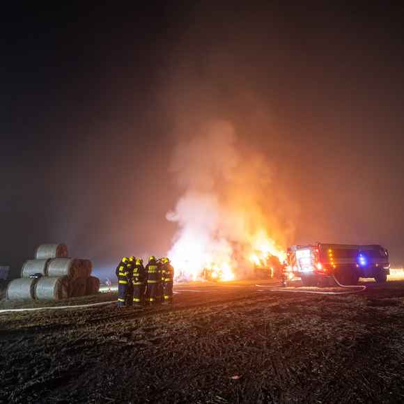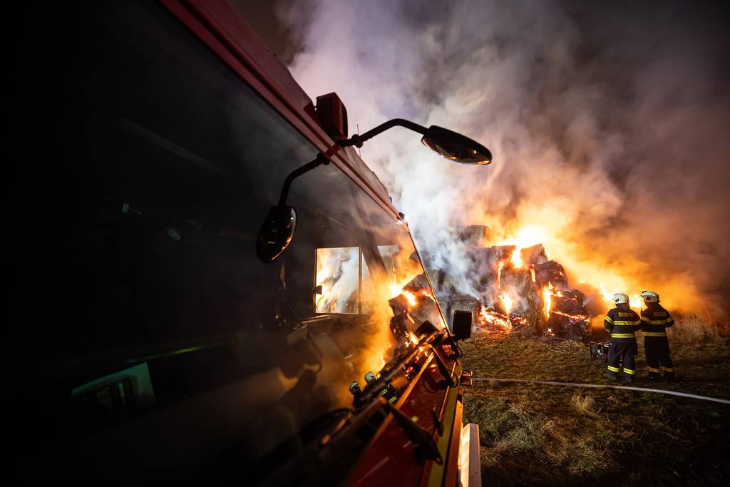 Když první jednotky dorazily na místo, bylo zřejmé, že plameny už zachvátily celý stoh tvořený přibližně stovkou balíků.