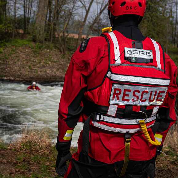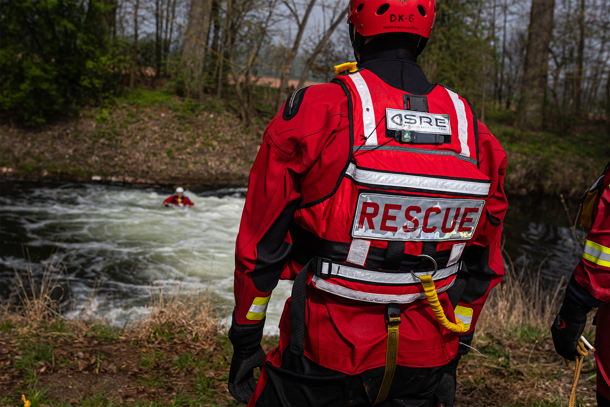 Důležitou roli hraje také jištění ze břehu. Hasič, který vstupuje do vody, je vždy zajištěn kolegy pomocí lan, aby byl co nejvíce eliminován vliv silného proudu a vodního válce.