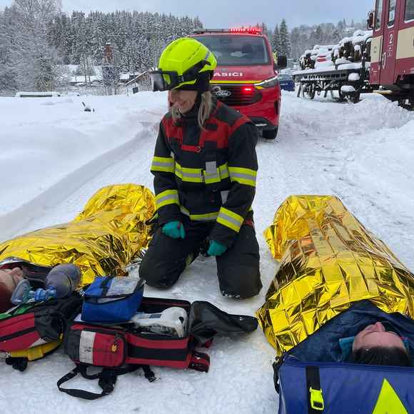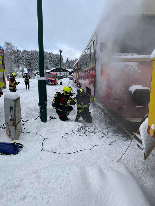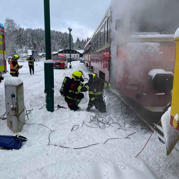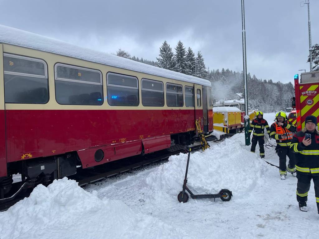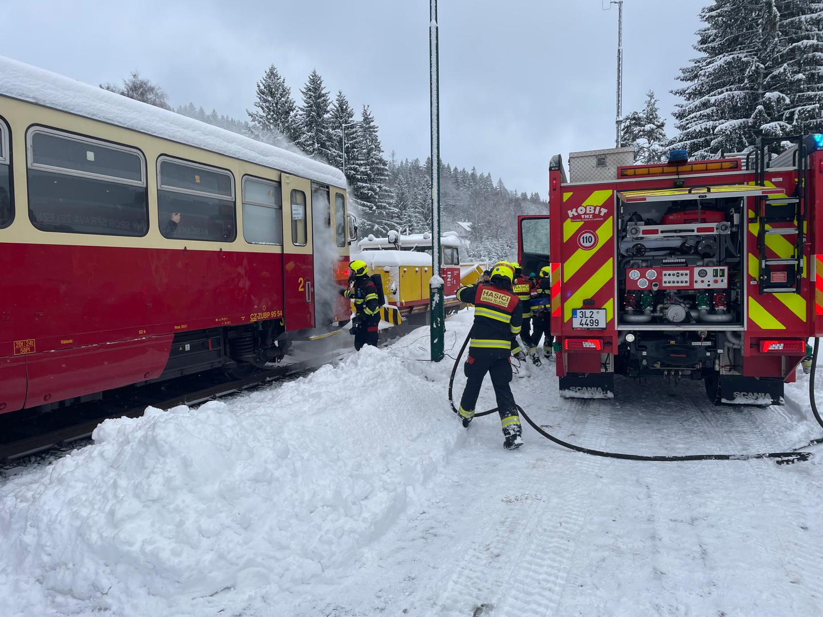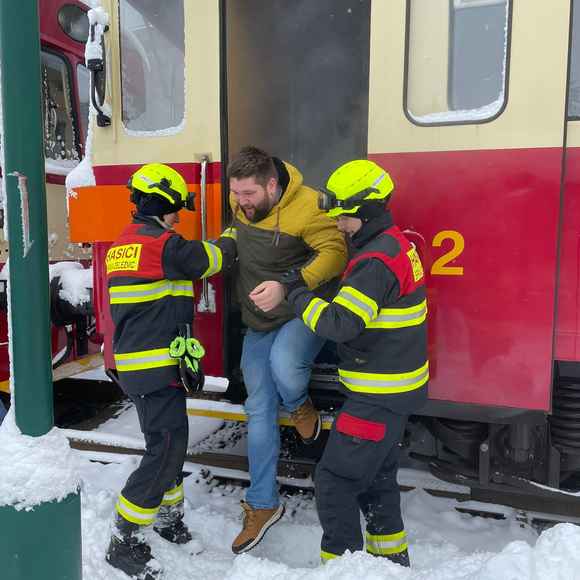 V železniční stanici Kořenov se uskutečnilo taktické cvičení jednotky HZS Správy železnic Liberec. Námět vycházel ze současných rizik spojených s přepravou moderních zařízení. Scénář simuloval požár elektrokoloběžky s Li-ion baterií ve vagonu ozubnicové dráhy na trati z Kořenova do Harrachova.