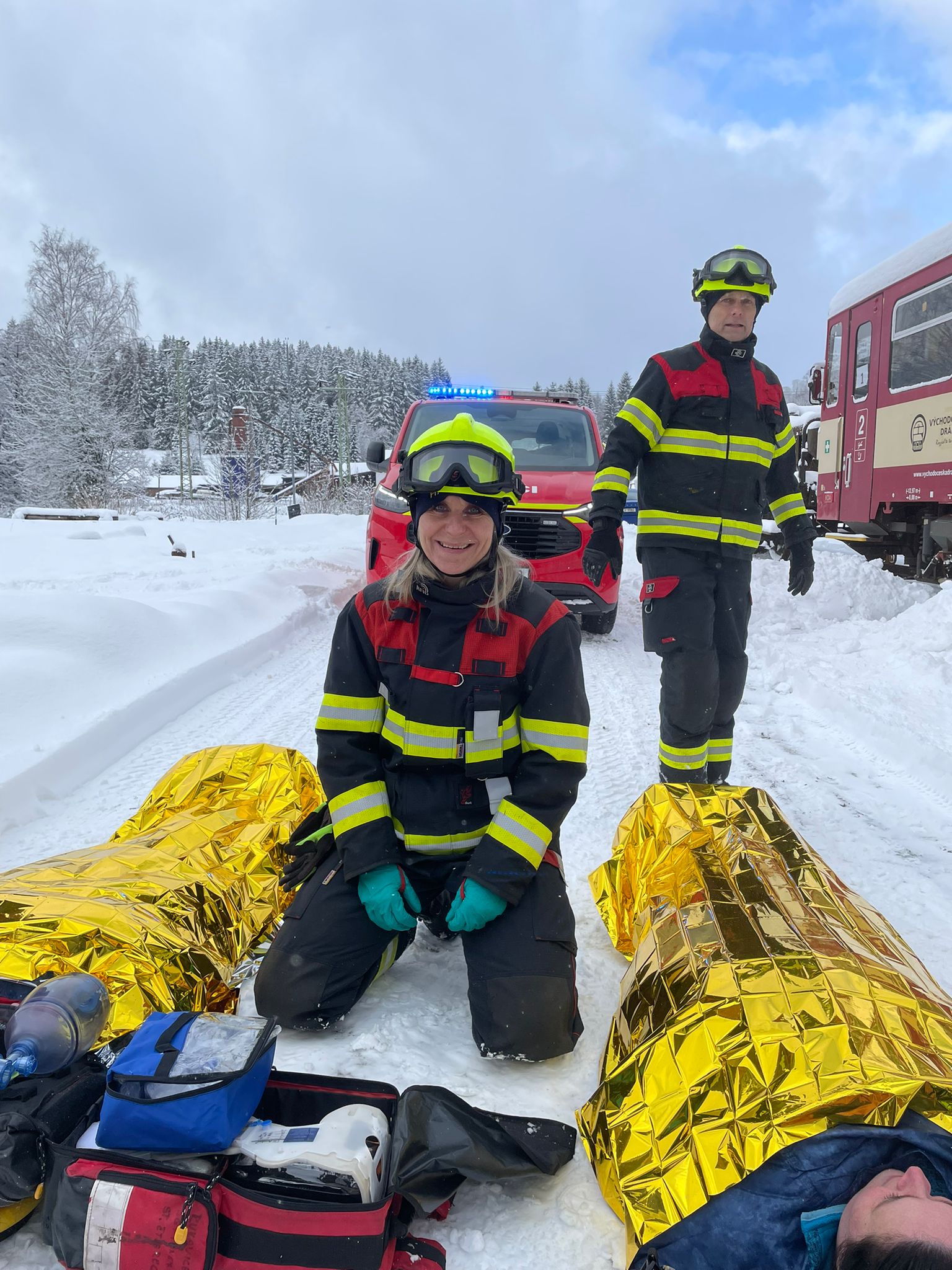 Jednotka si prakticky ověřila postup při zásahu u požáru Li ion baterie, průzkum silně zakouřeného vozu v dýchací technice i samotnou organizaci záchrany osob. Figuranti představovali deset evakuovaných cestujících a další dvě osoby, které bylo nutné vyhledat a zachránit.
