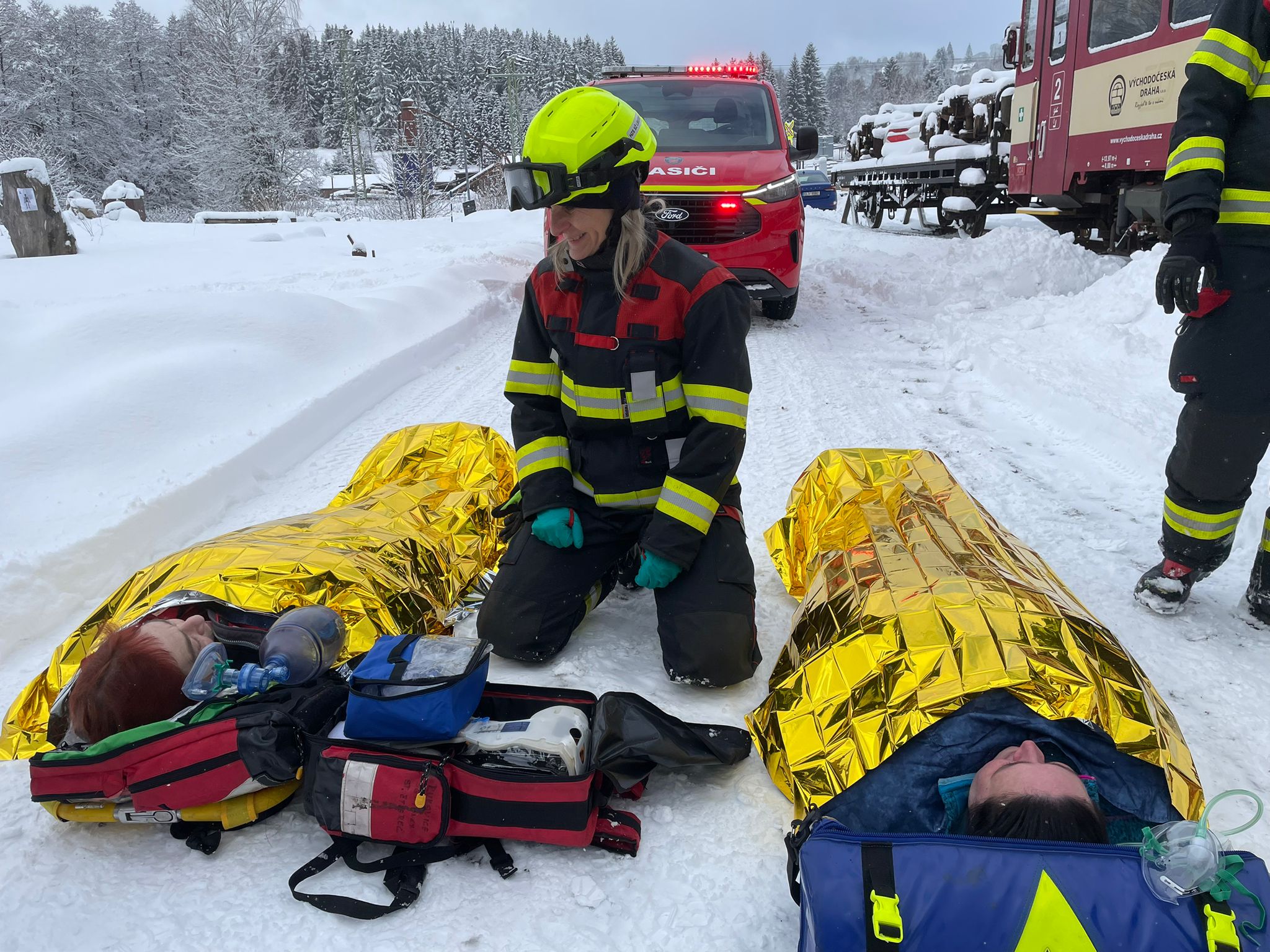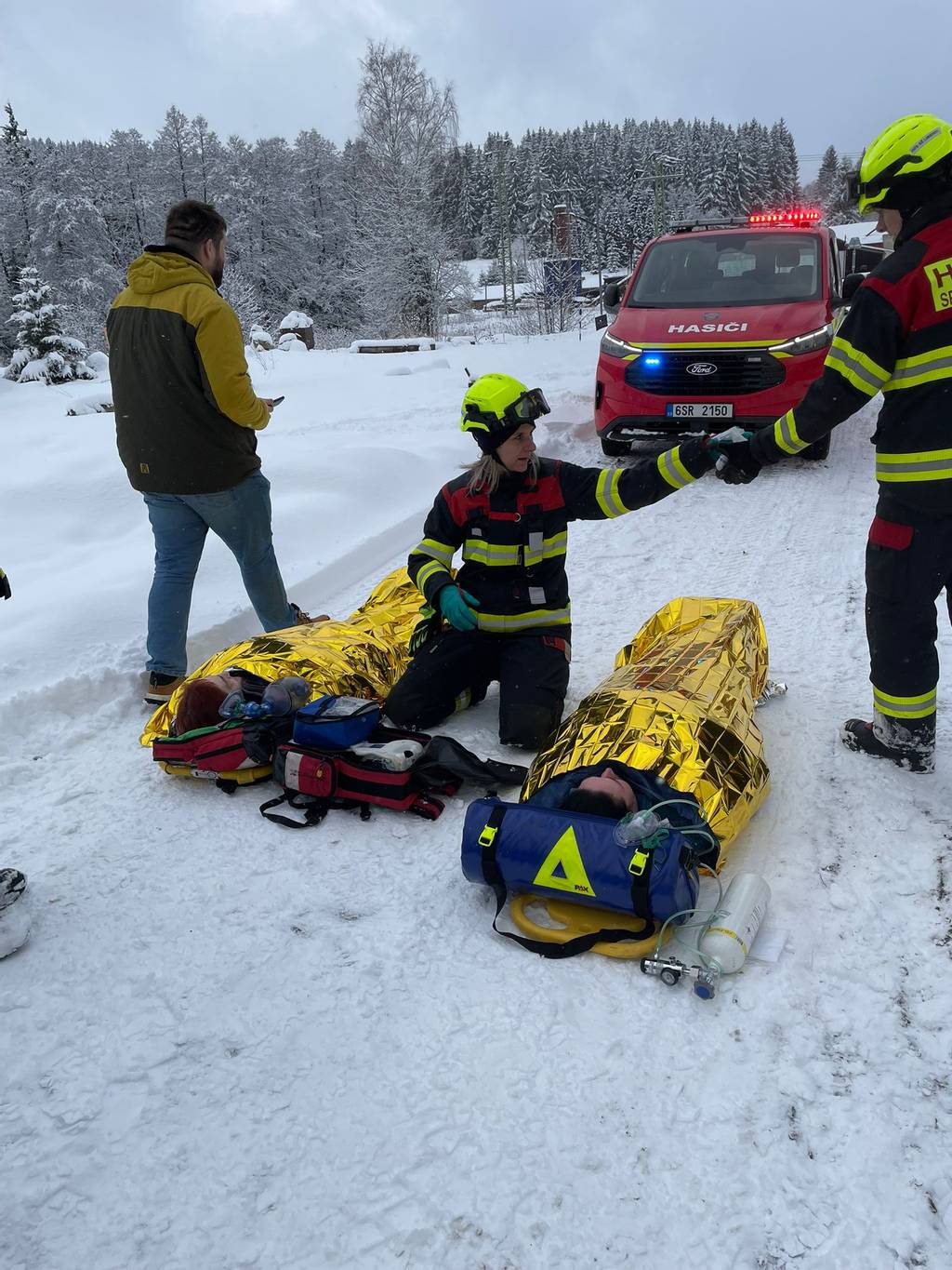 Hasiči zasahovali ve sněhu a mrazu v podmínkách blízkých reálné mimořádné události.