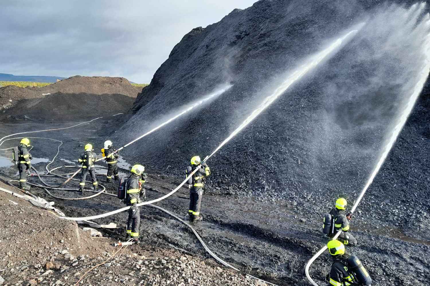 Požár se podařilo lokalizovat, ale kvůli zvýšené teplotě uvnitř hromady museli hasiči znovu zasáhnout.