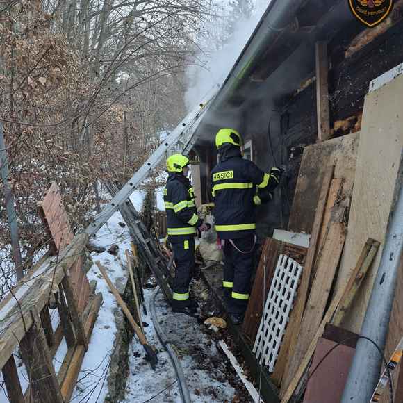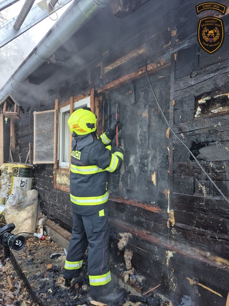 Druhá událost byla na tísňovou linku ohlášena několik minut po osmé hodině ranní. V obci Lužná na Vsetínsku došlo k požáru dřevěné chaty. K zásahu vyjeli profesionální hasiči ze Vsetína a dobrovolné jednotky z Prlova a Valašské Polanky.