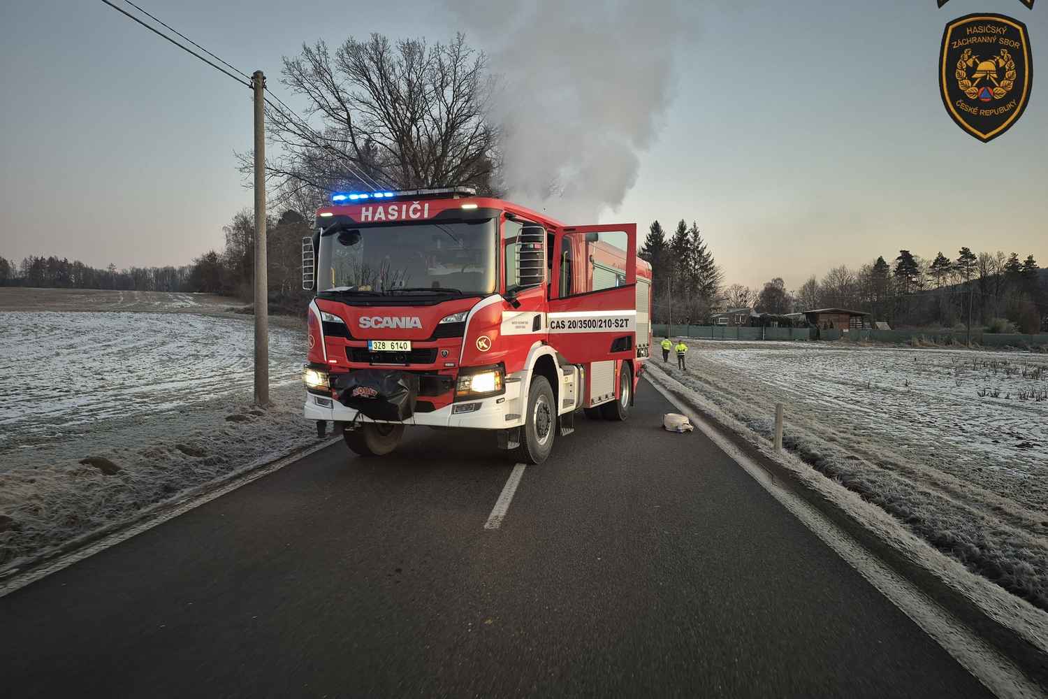 Na Vsetínsku dnes ráno hasiči zasahovali u dvou požárů, které si vyžádaly výjezd profesionálních i dobrovolných jednotek. Hořelo nákladní vozidlo u obce Krhová a také dřevěná chata v obci Lužná.