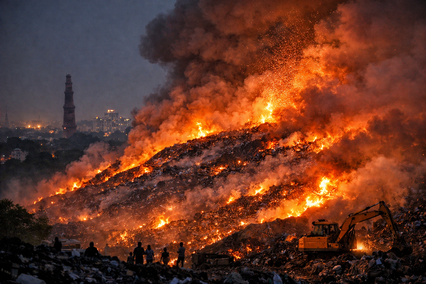 Skládka v Bhalswě v severním Dillí je vyšší než 17ti podlažní budova a pokrývá plochu větší než 50 fotbalových hřišť. Odpadoví dělníci, kteří žijí v nedalekých domech, se v úterý vydali pryč ze svých domovů. Ale ve středu ráno tisíce lidí, kteří žijí a pracují na skládce, zahájili nebezpečný proces pokusu o záchranu a likvidaci požáru.