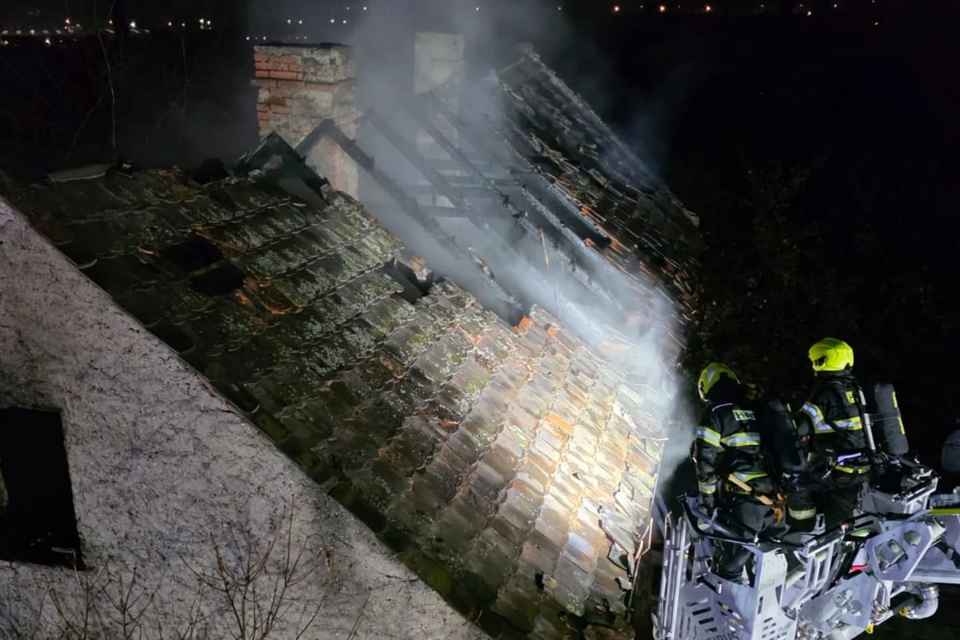 Požár přístřešku a střechy rodinného domu na Berounsku