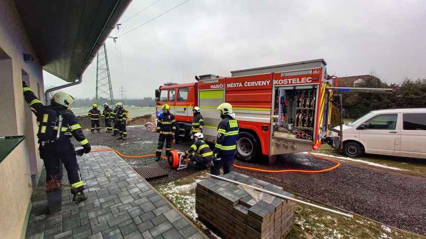 Na místě zasahovali profesionální hasiči z Velkého Poříčí a jejich dobrovolní kolegové z Červeného Kostelce a Zábrodí.