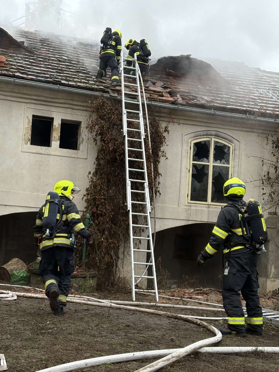 "K likvidaci požáru byly nasazeny dva vodní proudy "C", jeden zvenčí na střechu, druhý uvnitř budovy. Hasiči z automobilového žebříku částečně rozebírají střechu a objekt odvětrají," sdělil mluvčí hasičů.