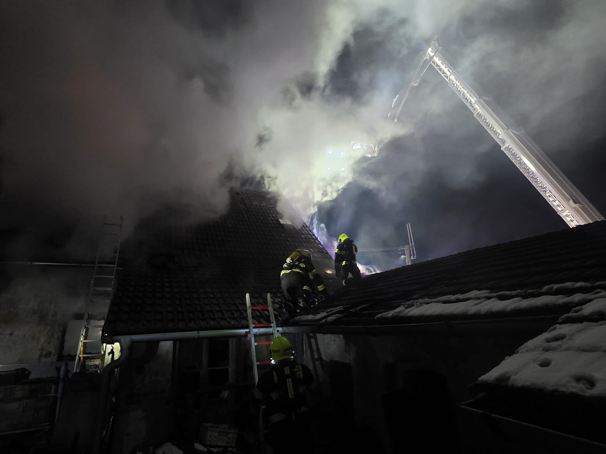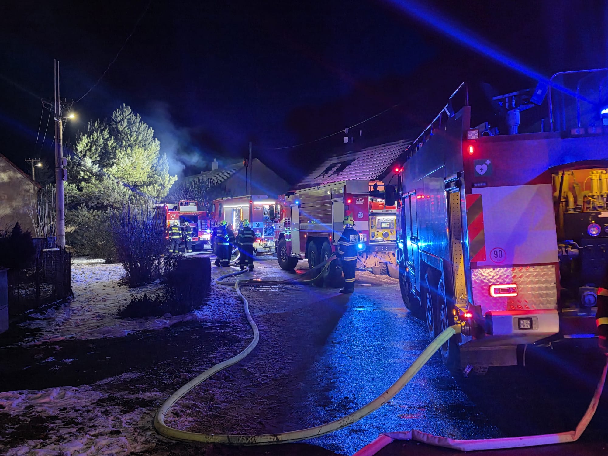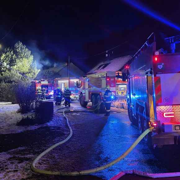 Po příjezdu na místo velitel zásahu potvrdil, že požár zasáhl přízemí i první patro rodinného domu a dále se šířil na střešní konstrukci. Hasiči zahájili hasební práce v dýchací technice z vnitřní i vnější části objektu. K zásahu byla využita také automobilová plošina.