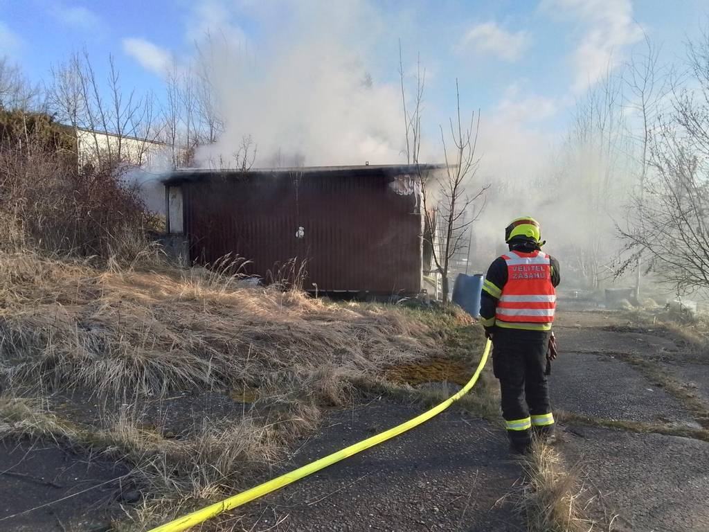 Požár stavební buňky zaměstnal čtyři jednotky hasičů