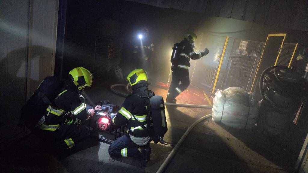 Požár v průmyslovém areály byl likvidován i z výškové techniky