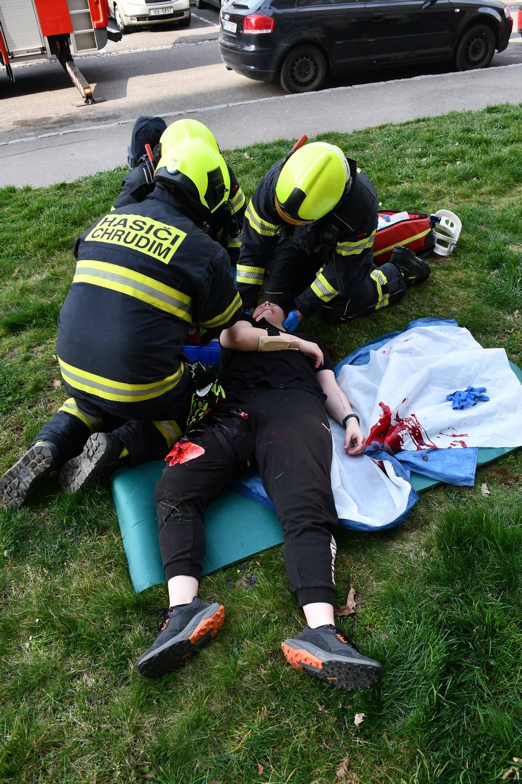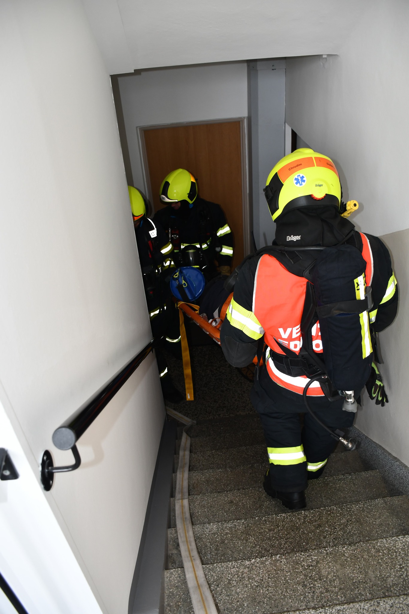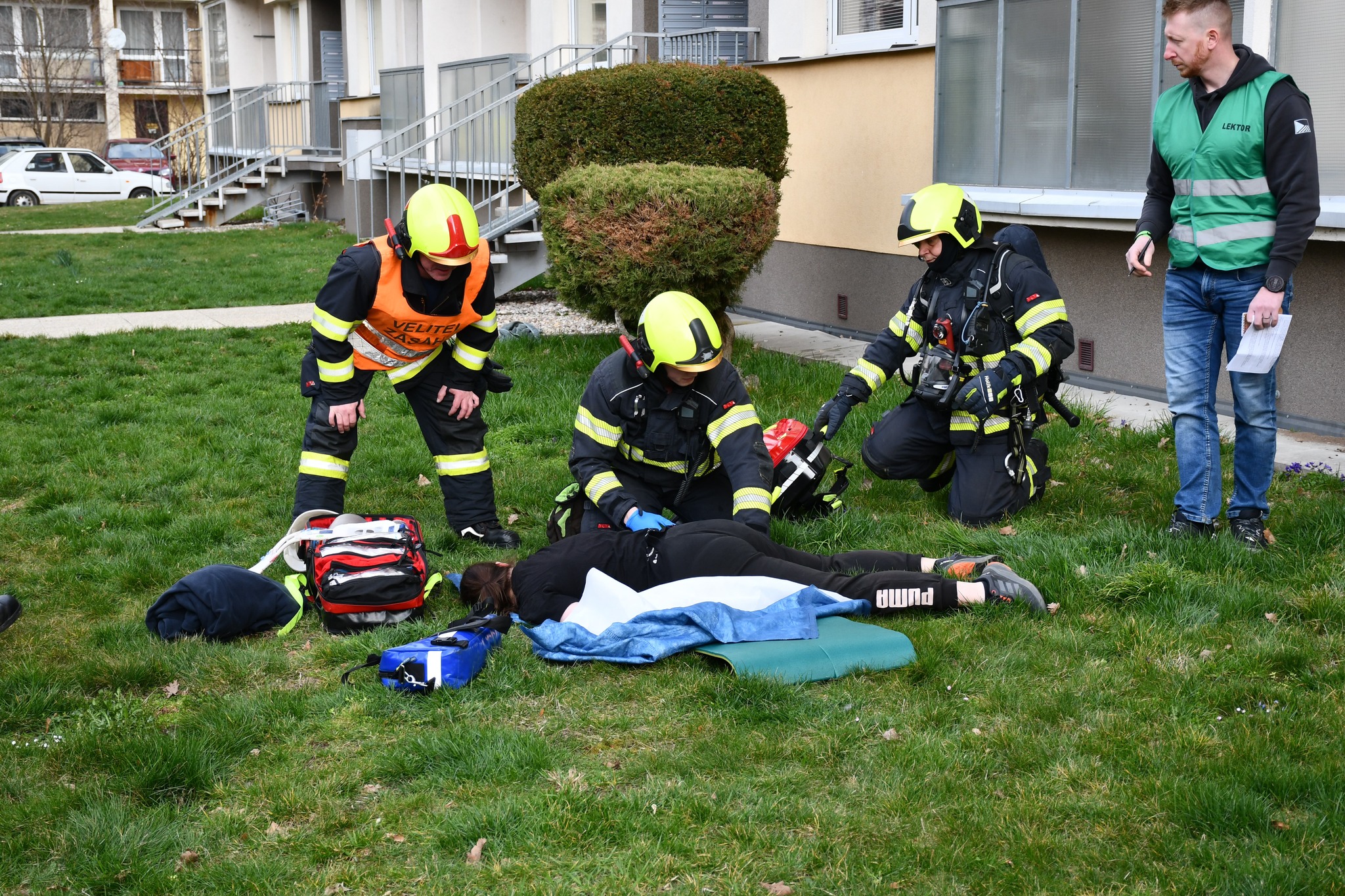 Další figuranti představující zraněné byli rozmístěni v různých částech domu. Na schodišti se například nacházely tři osoby, z nichž jedna utrpěla těžké popáleniny a nebyla schopna samostatného pohybu. Dvě další osoby měly lehčí popáleniny a dokázaly se pohybovat. Součástí scénáře byla také evakuace obyvatel domu, kdy objekt opustilo více než deset osob.