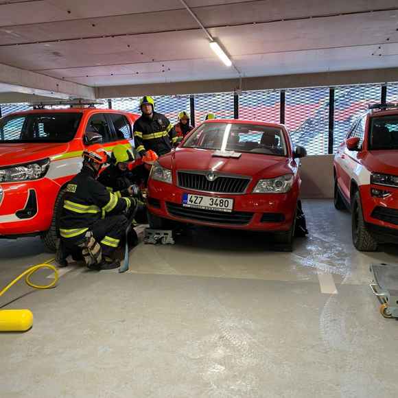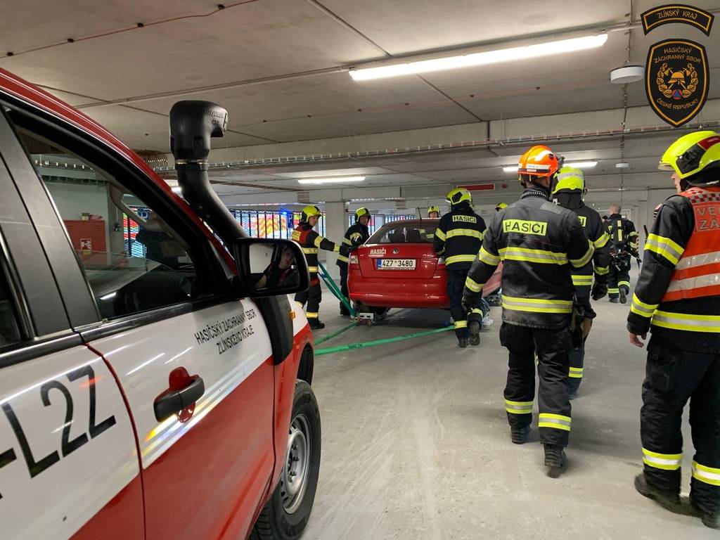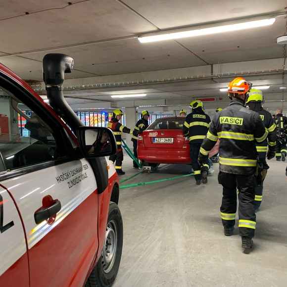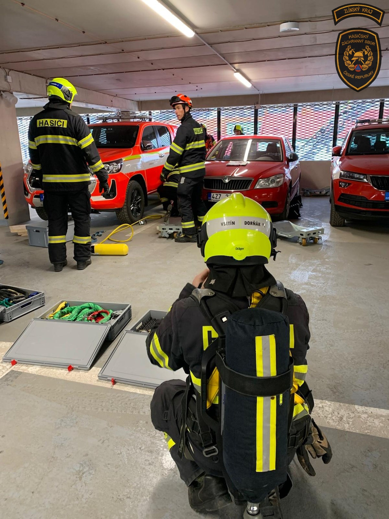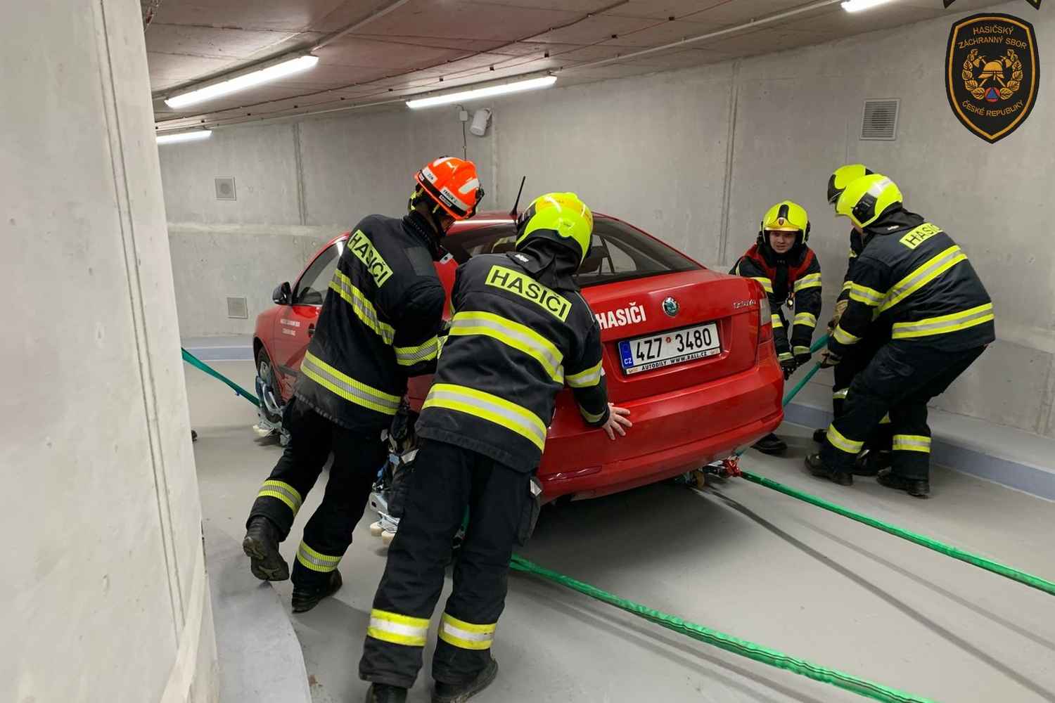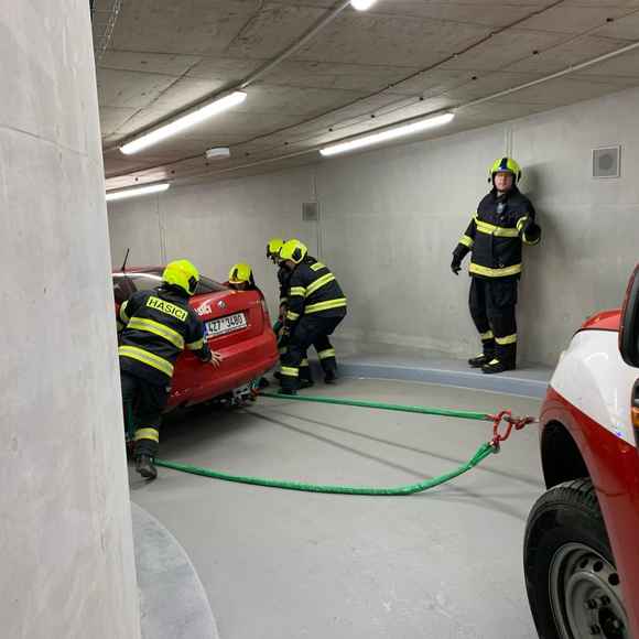 "Hasiči zasahující v dýchací technice si během cvičení vyzkoušeli vyhledávání a evakuaci osob, manipulaci s nepojízdnými vozidly i použití přívěsného odtahového zařízení pro jejich vyproštění z garážových prostor," uvedla mluvčí hasičů.