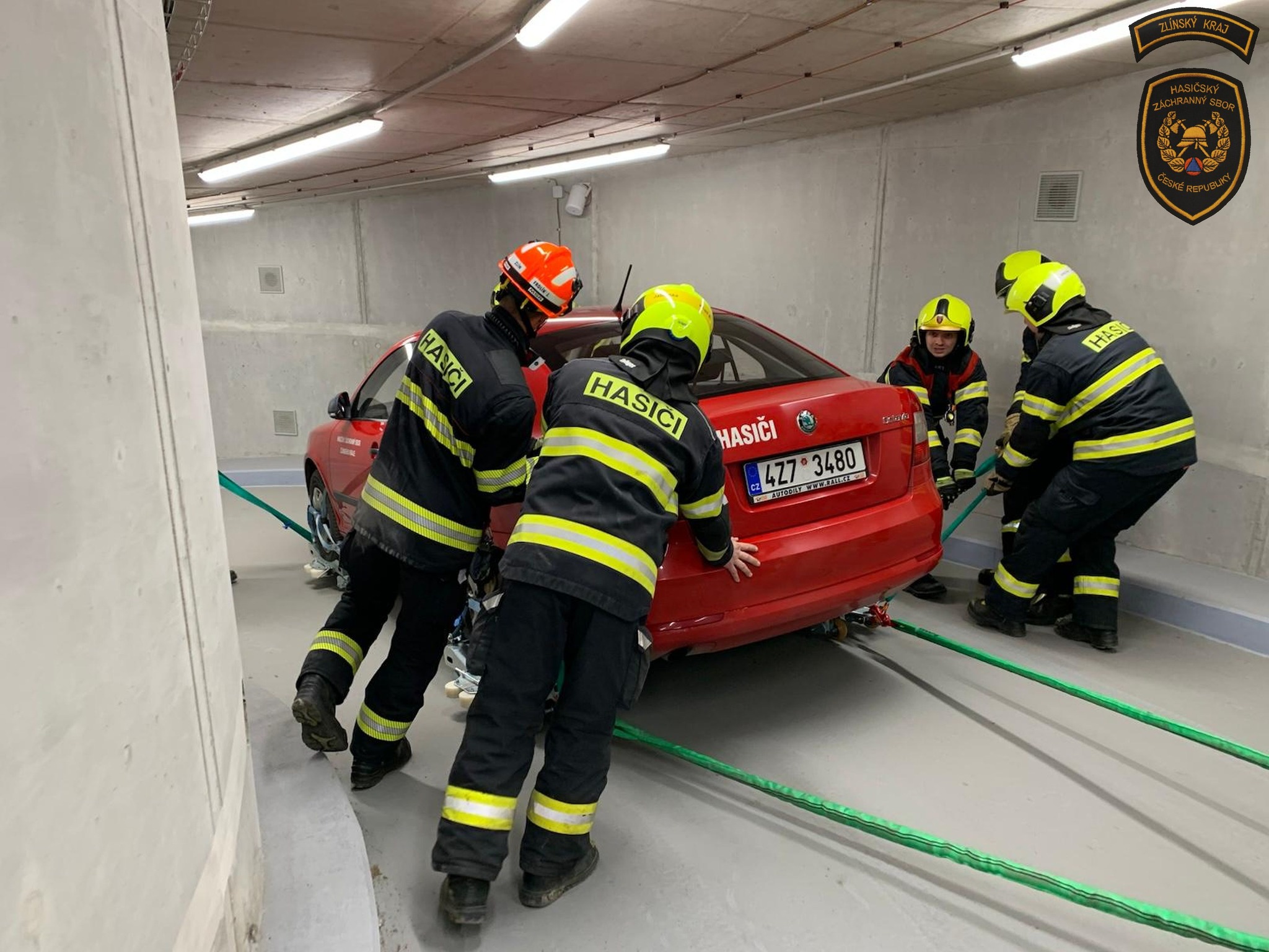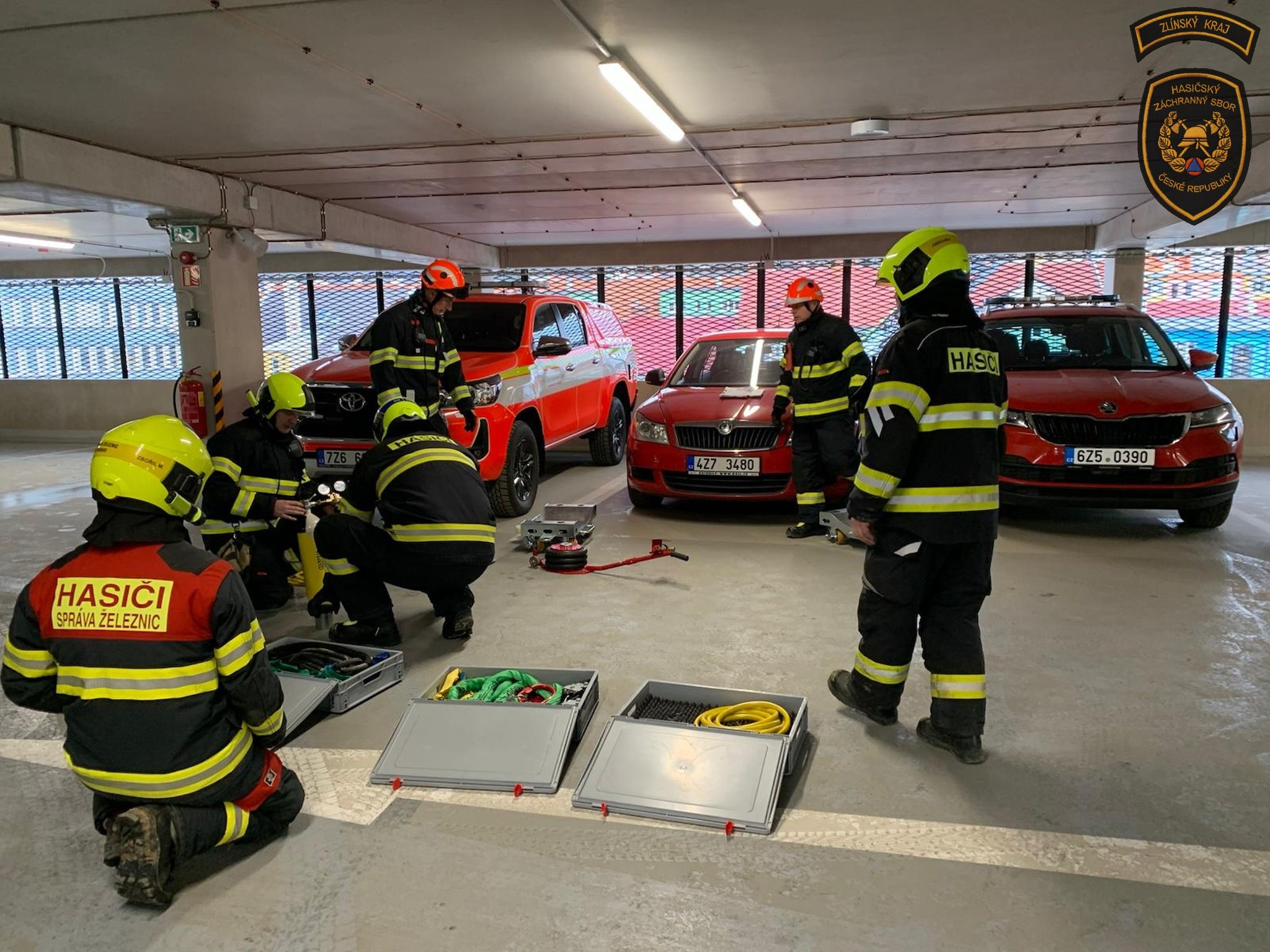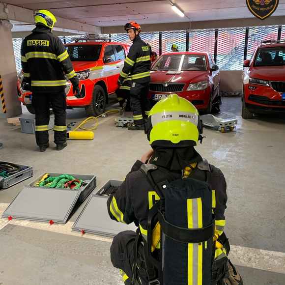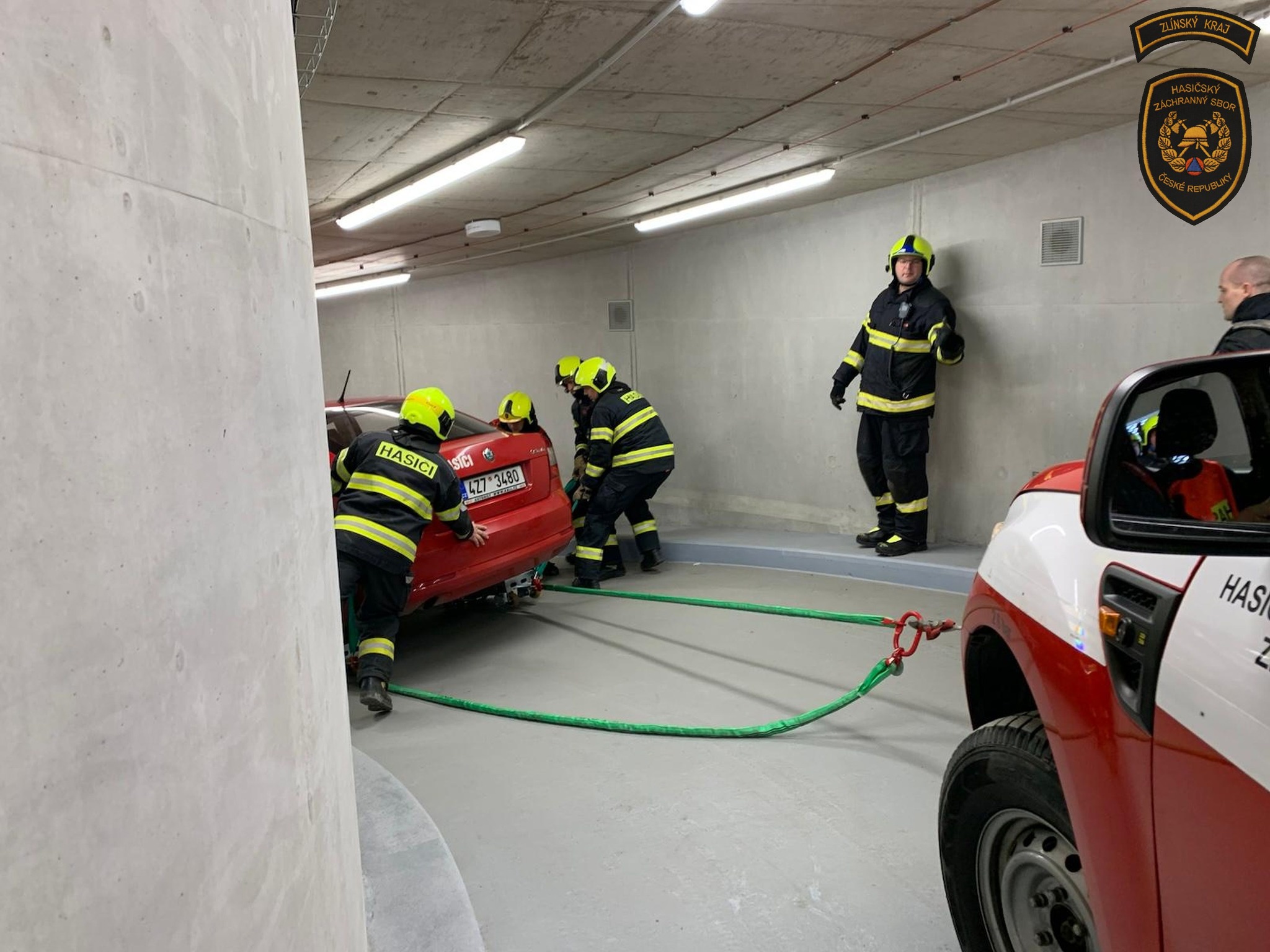 "Hasiči zasahující v dýchací technice si během cvičení vyzkoušeli vyhledávání a evakuaci osob, manipulaci s nepojízdnými vozidly i použití přívěsného odtahového zařízení pro jejich vyproštění z garážových prostor," uvedla mluvčí hasičů.