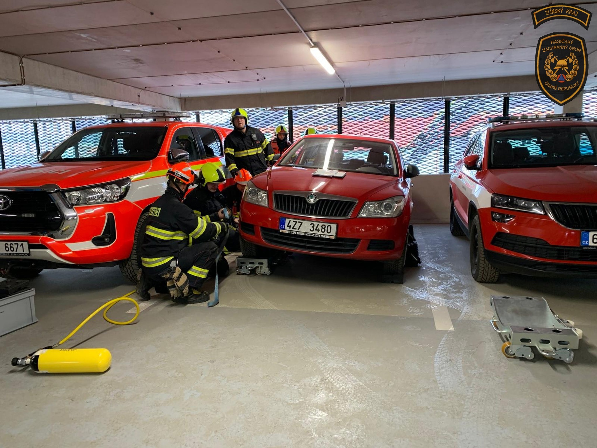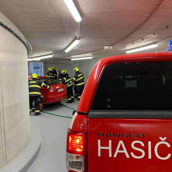 Dnes dopoledne se v parkovacím domě v Nádražní ulici ve Vsetíně uskutečnilo prověřovací cvičení jednotek požární ochrany. Námětem byl simulovaný požár osobního automobilu ve třetím nadzemním podlaží, jehož cílem bylo ověřit postupy zásahu v uzavřeném a silně zakouřeném prostoru.