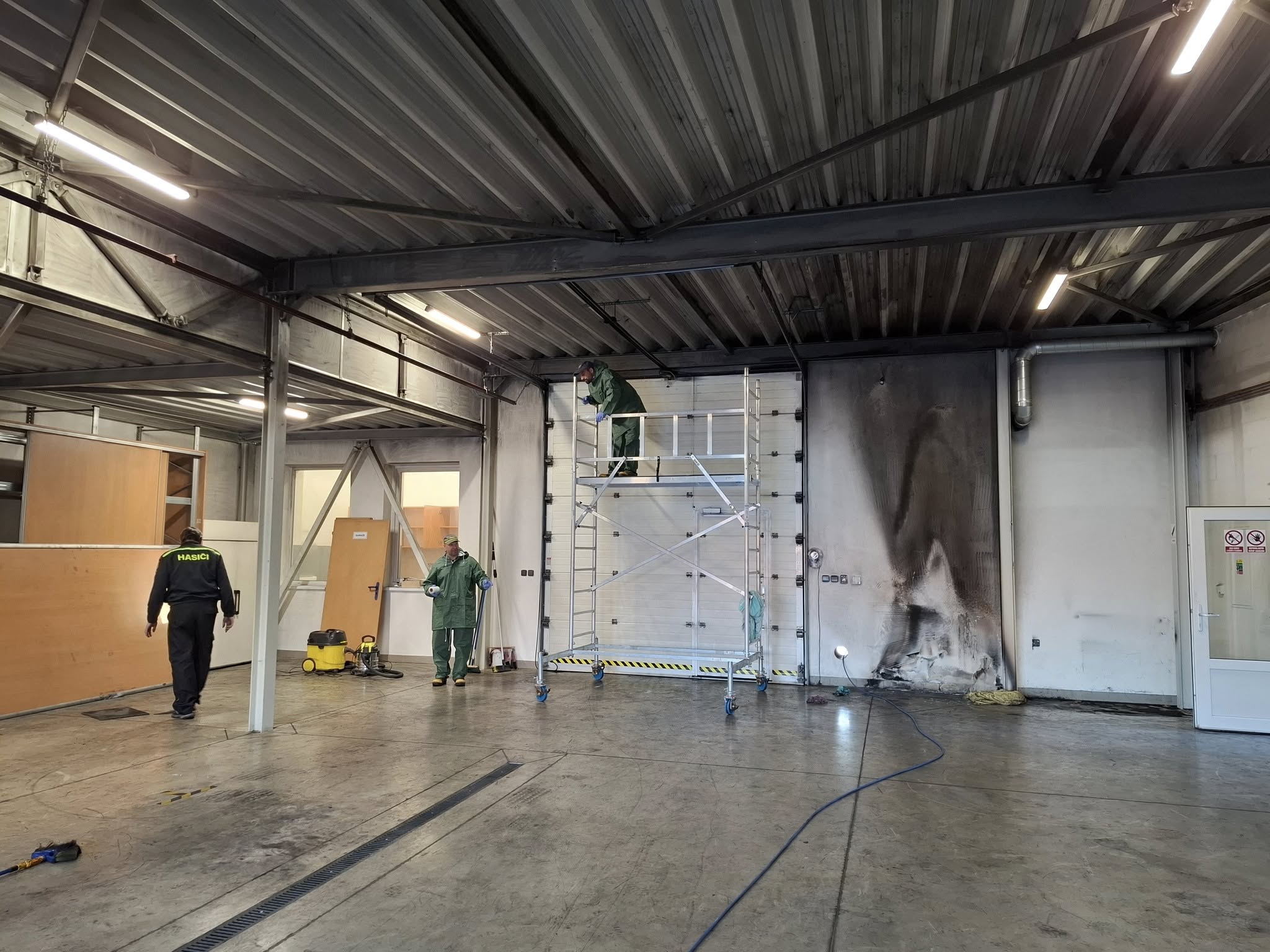 Zatímco přes den likvidovali následky požáru, večer už plánovali, jak co nejrychleji zbrojnici opravit a vrátit se zpátky do plného provozu.