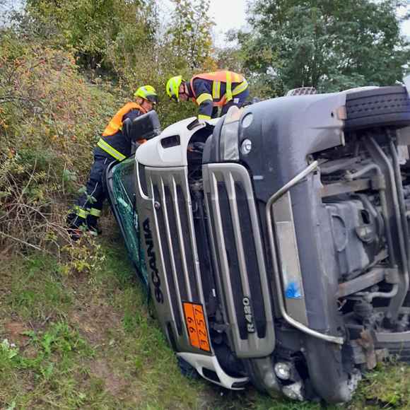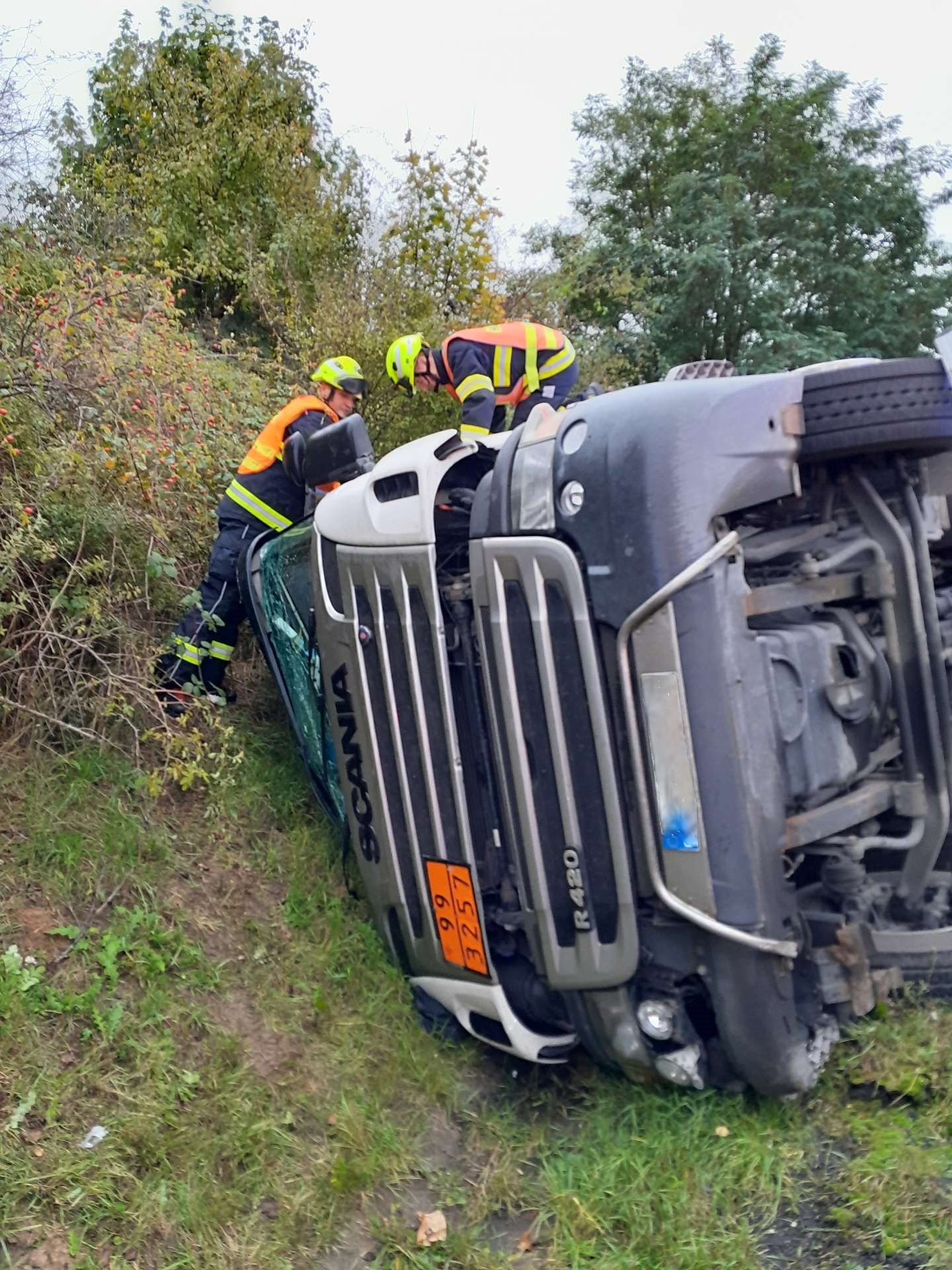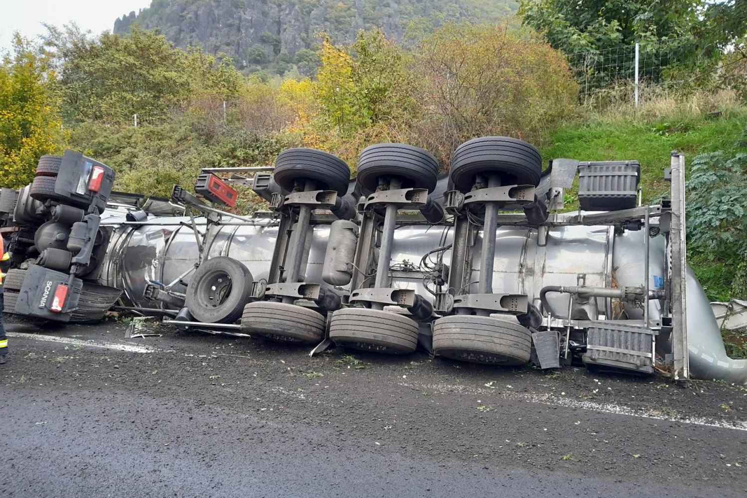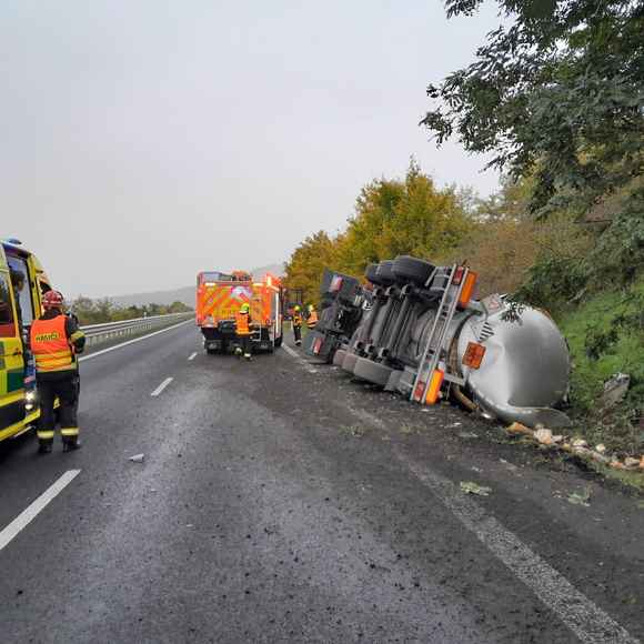 V úterý 7. října krátce před 17. hodinou přijali hasiči oznámení o převrácené cisterně, která převážela asfalt. Řidič vyvázl bez zranění, silnice musela být uzavřena v obou směrech.