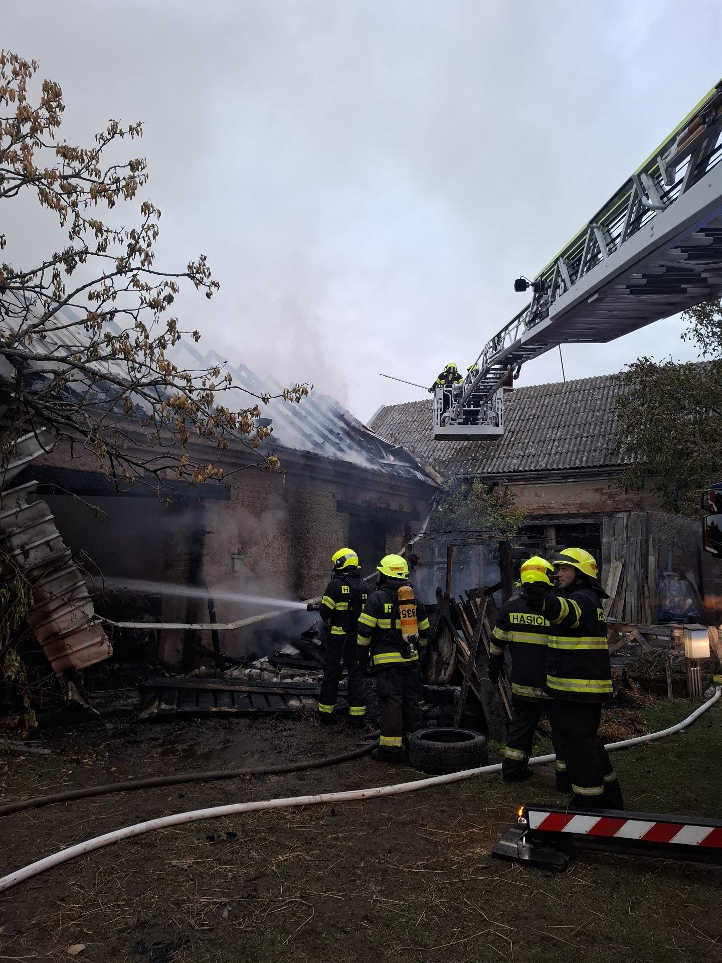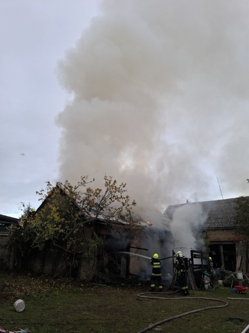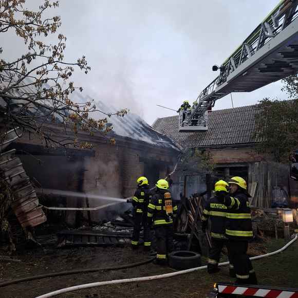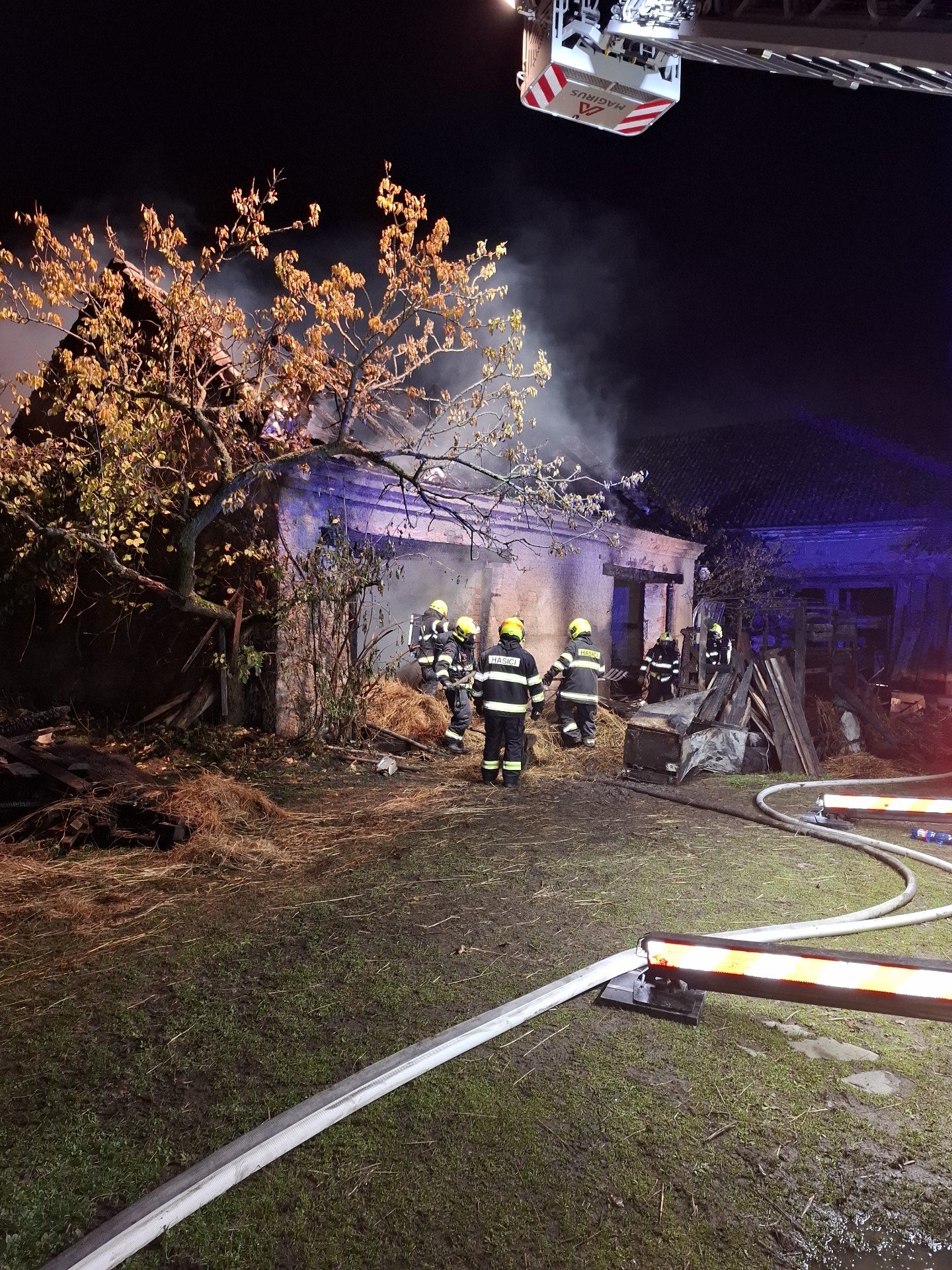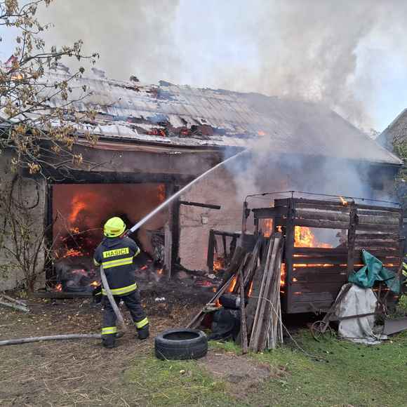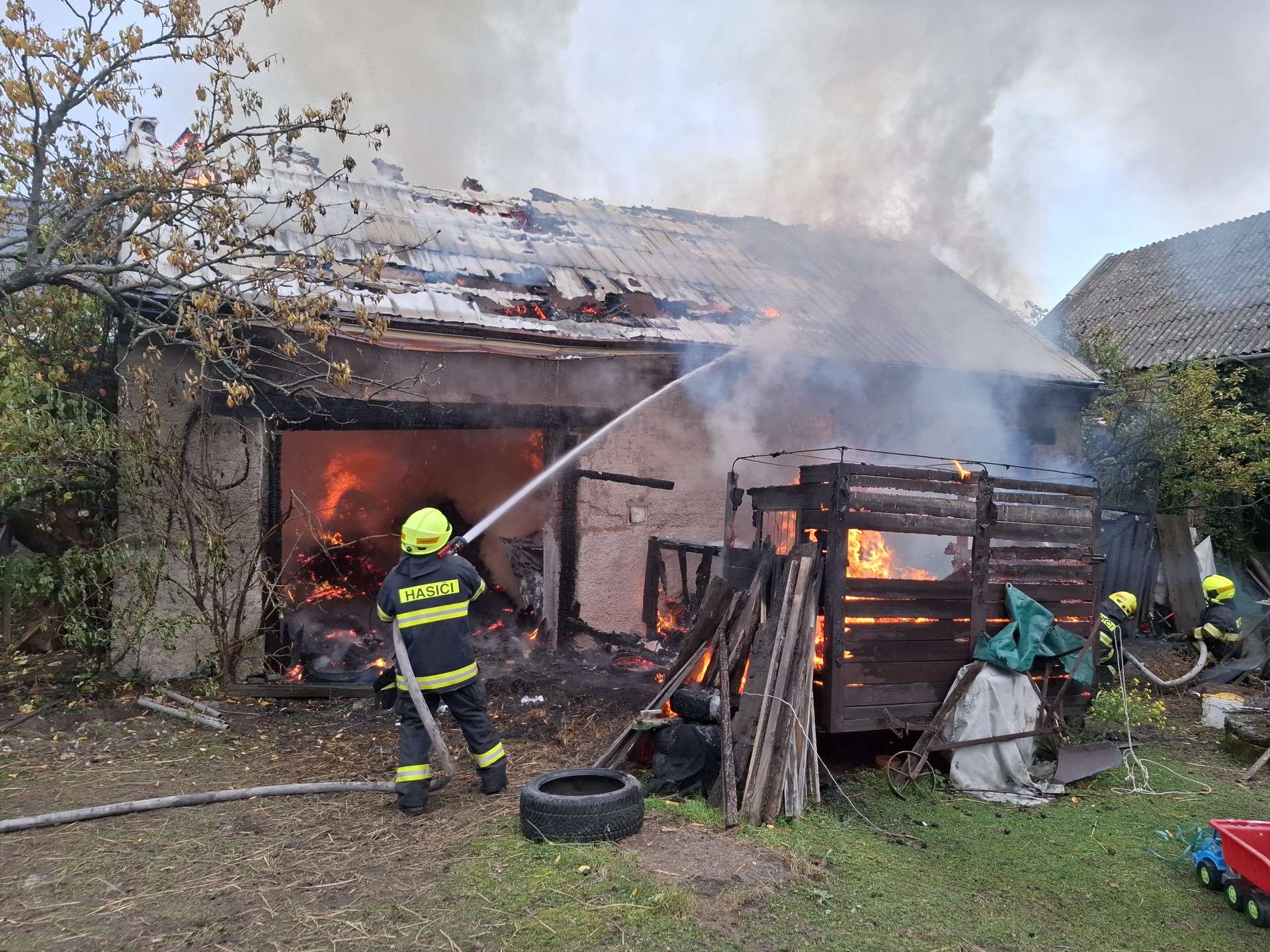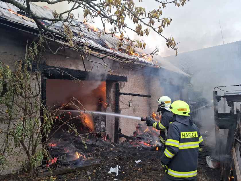 Podle mluvčího hasičů zasáhl oheň celou hospodářskou budovu.