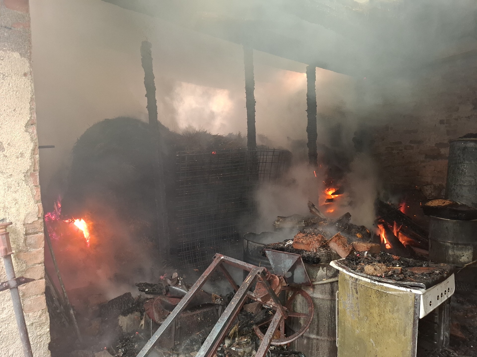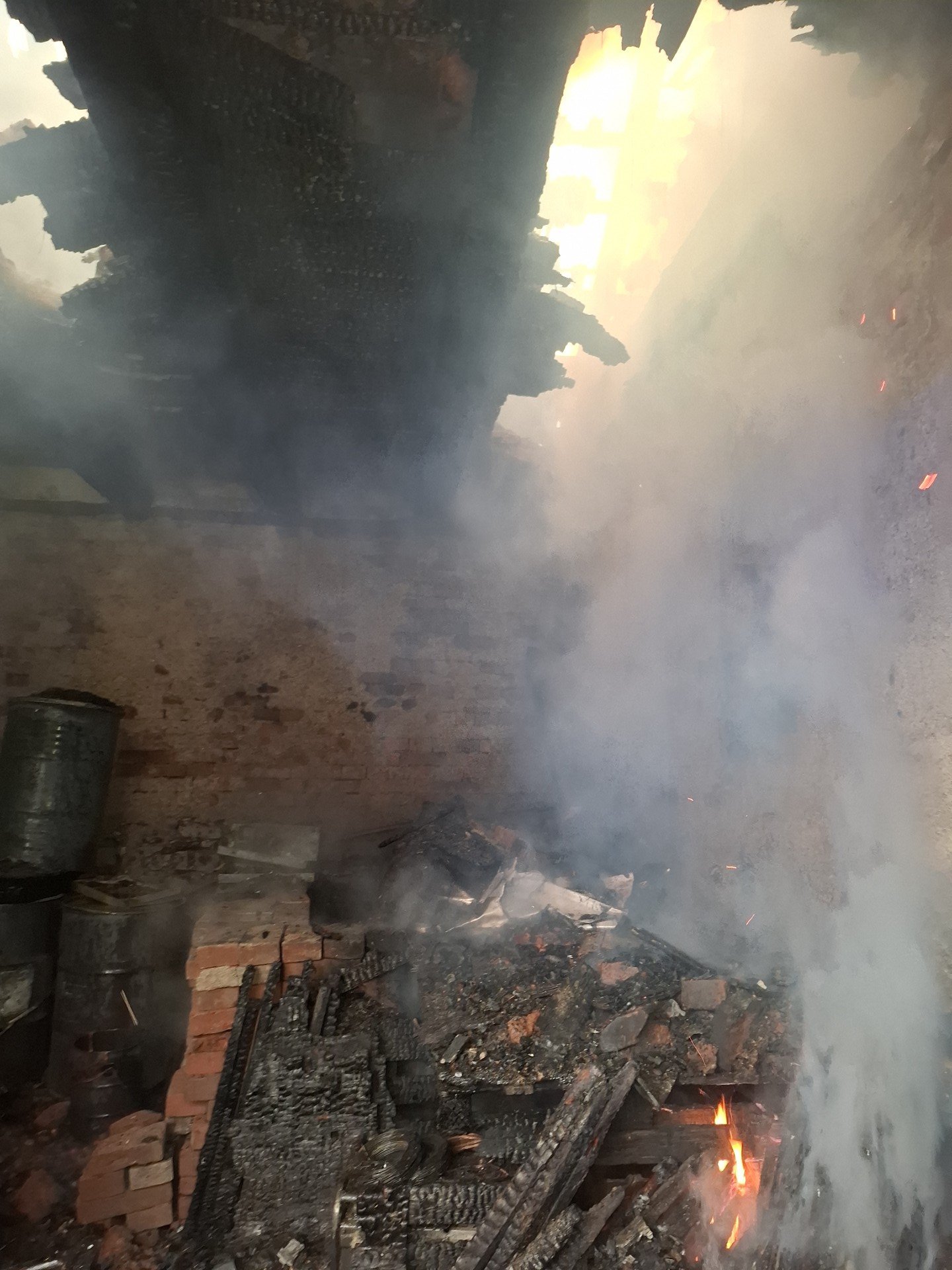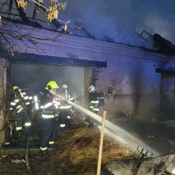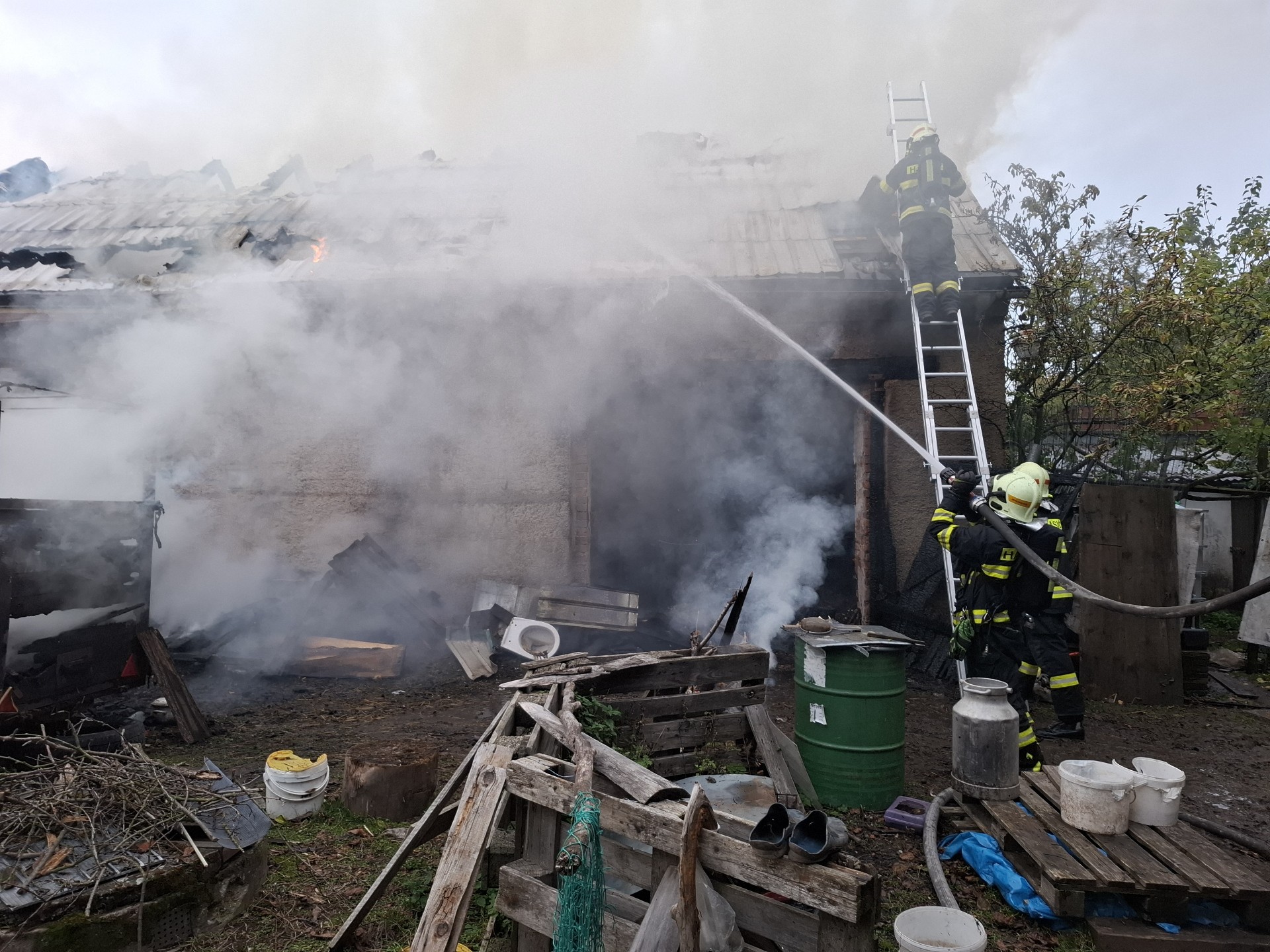 Podle mluvčího hasičů zasáhl oheň celou hospodářskou budovu.
