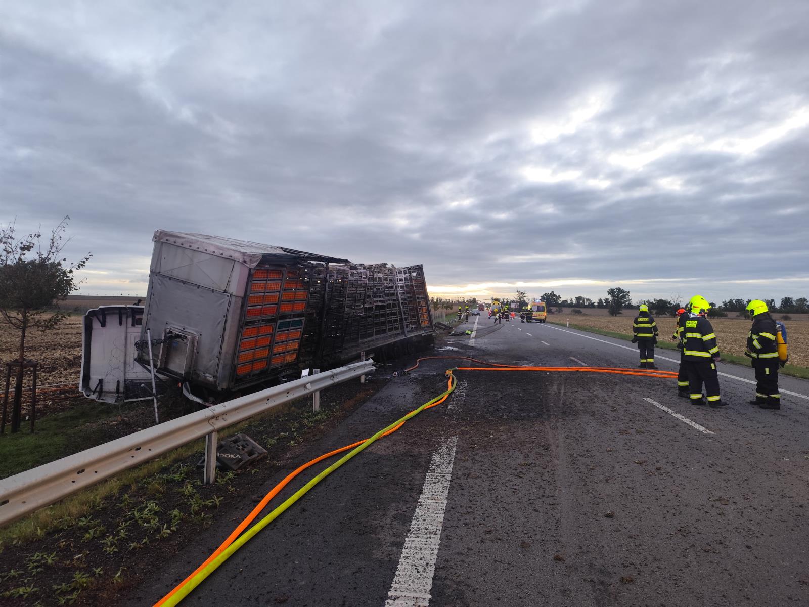 „Mohu potvrdit, že naše jednotky vyjely k požáru nákladního vozidla, který vznikl v příčinné souvislosti s dopravní nehodou“ potvrdil mluvčí jihomoravských hasičů por. Mgr. Jaroslav Mikoška.