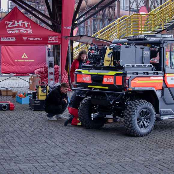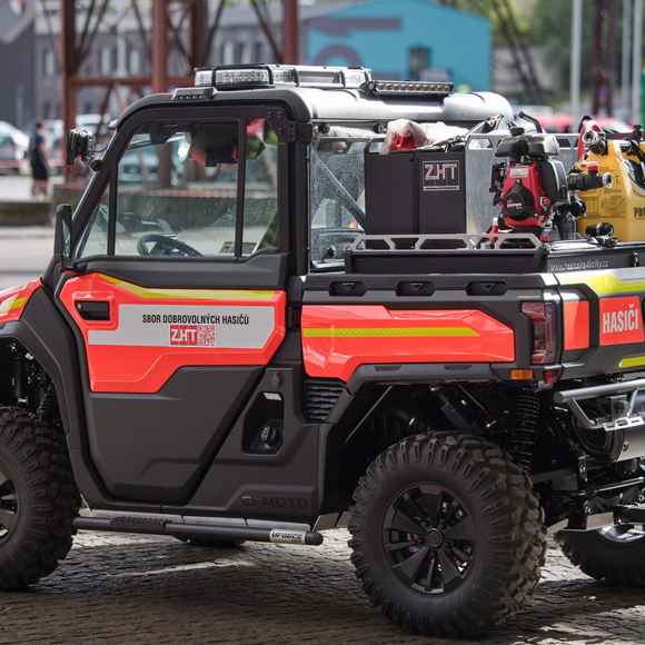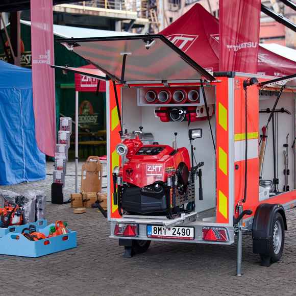ZHT přivezlo ukázat svou čtyřkolku a speciální přívěs určený k hašení.