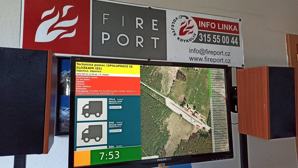 FIREPORT a konkrétně Lukáše Bartůňka jsem kontaktoval já. Úplně na začátku teda jsme začali aplikaci používat u nás v jednotce a na základě toho jsem si řekl že bychom reproduktor, přes který jsme vyhlašovali poplachy k výjezdům družstev na prvních ročnících rescucampu nahradit aplikací. No a Lukáš se k tomu postavil čelem že je to super nápad a celá spolupráce začala. Připravili pro nás na webu přístup do standardního přihlášení + funkci miniOPIS. Funkcí miniOPIS vyhlašujeme výjezdy družstvům jako se to děje ve skutečnosti přes KOPIS. Letošní ročník jsme ještě posunuly o demo panel. Jde o monitor s tiskárnou ze které se tisknou příkazy k výjezdu a reproduktory.